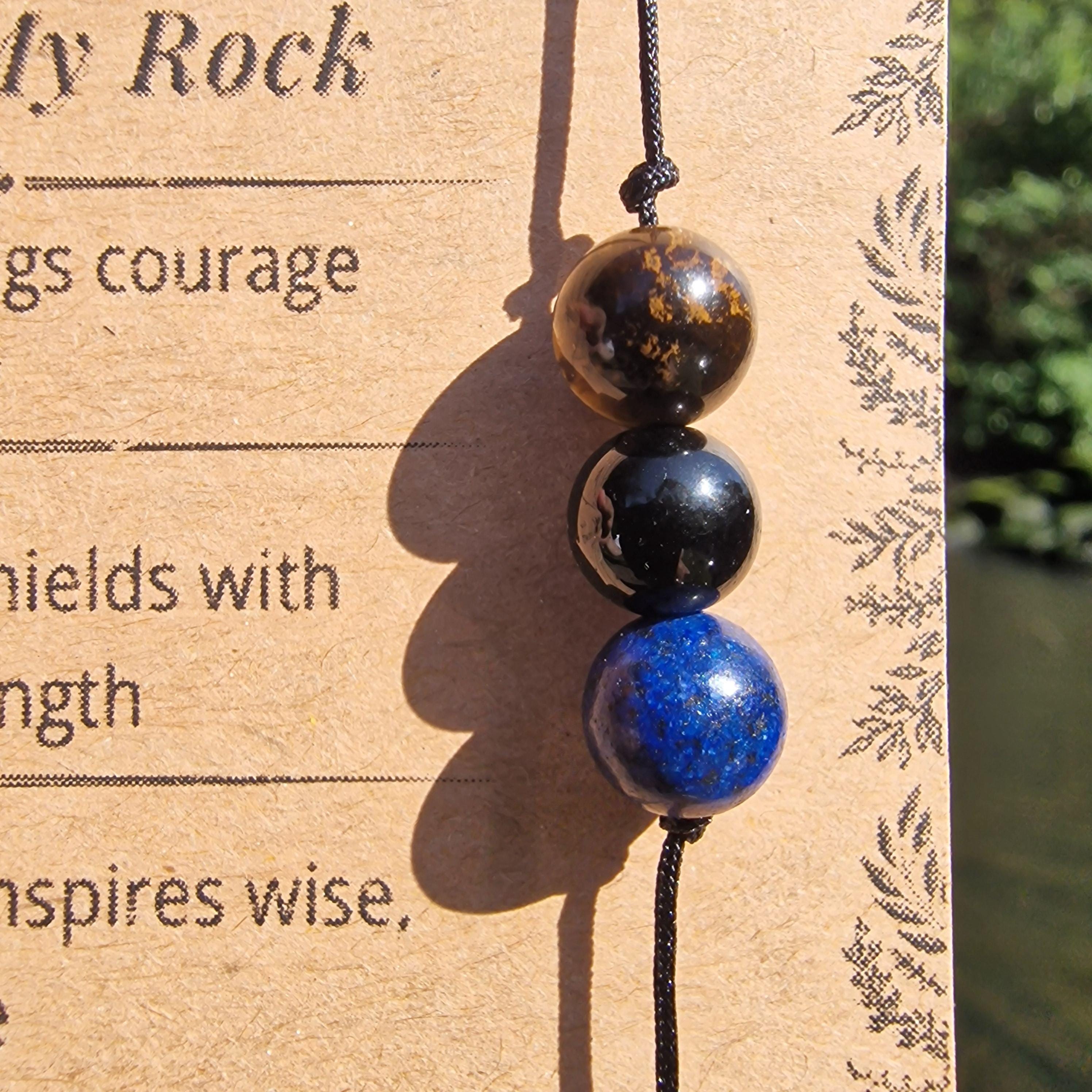 Gemstone Dad Bracelet: Tiger Eye, Onyx, Lapis Lazuli - Strength, Courage, Wisdom