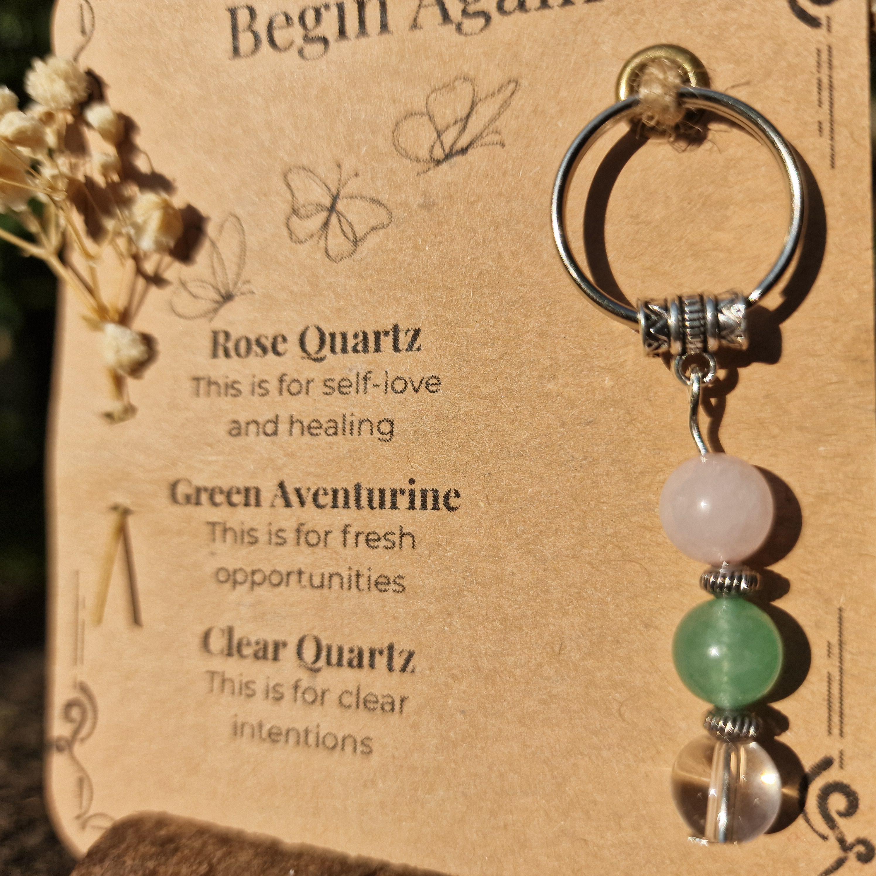 Crystal Keyring Gift Personalised New Beginnings for Fresh Start Healing Self Love Opportunity