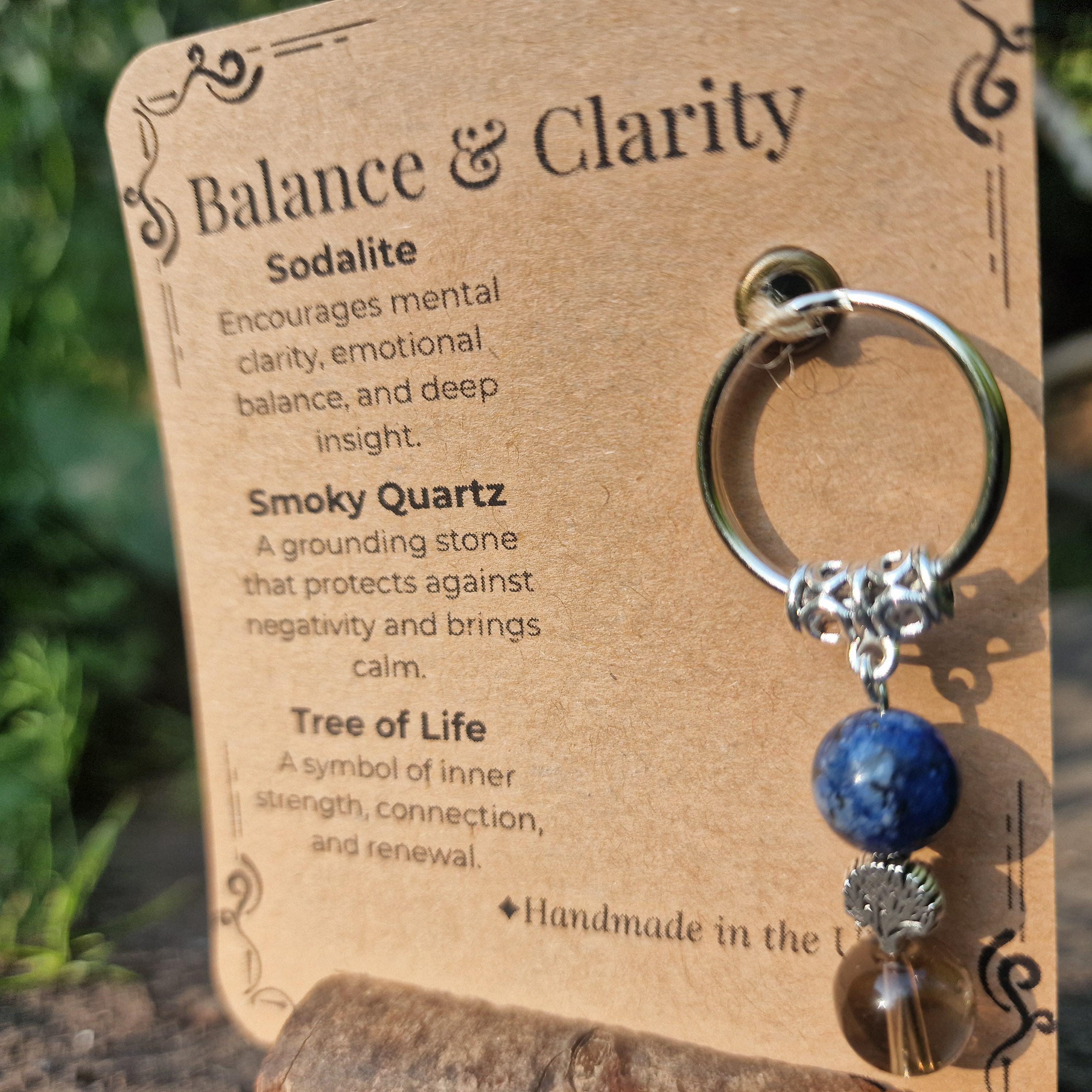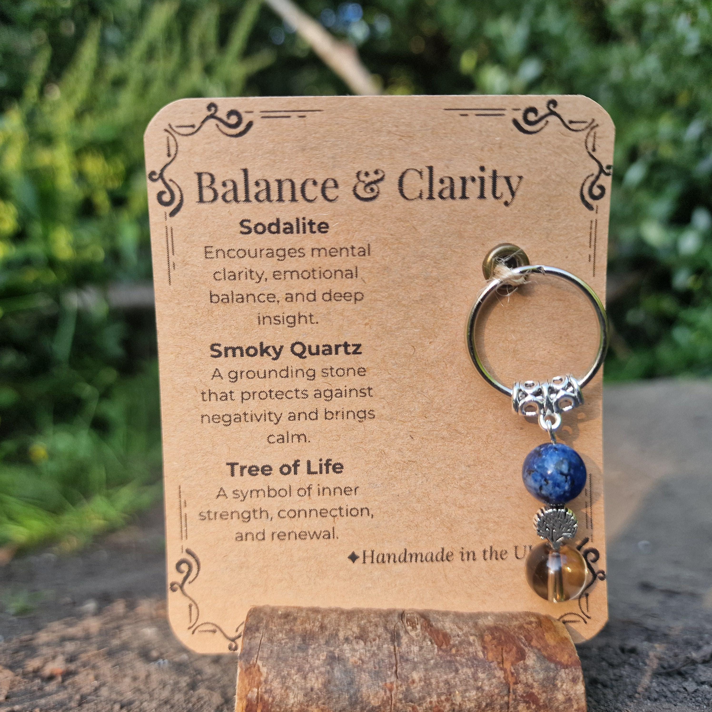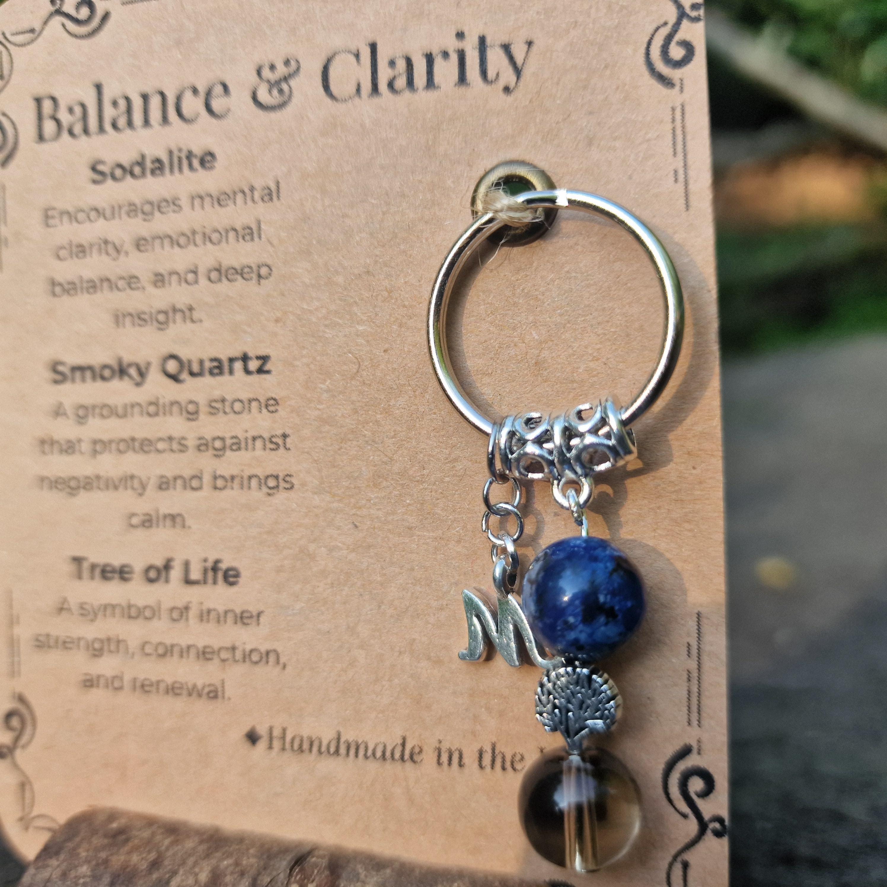 Personalized Healing Crystal Keyring: Sodalite, Smoky Quartz, Tree of Life Charm