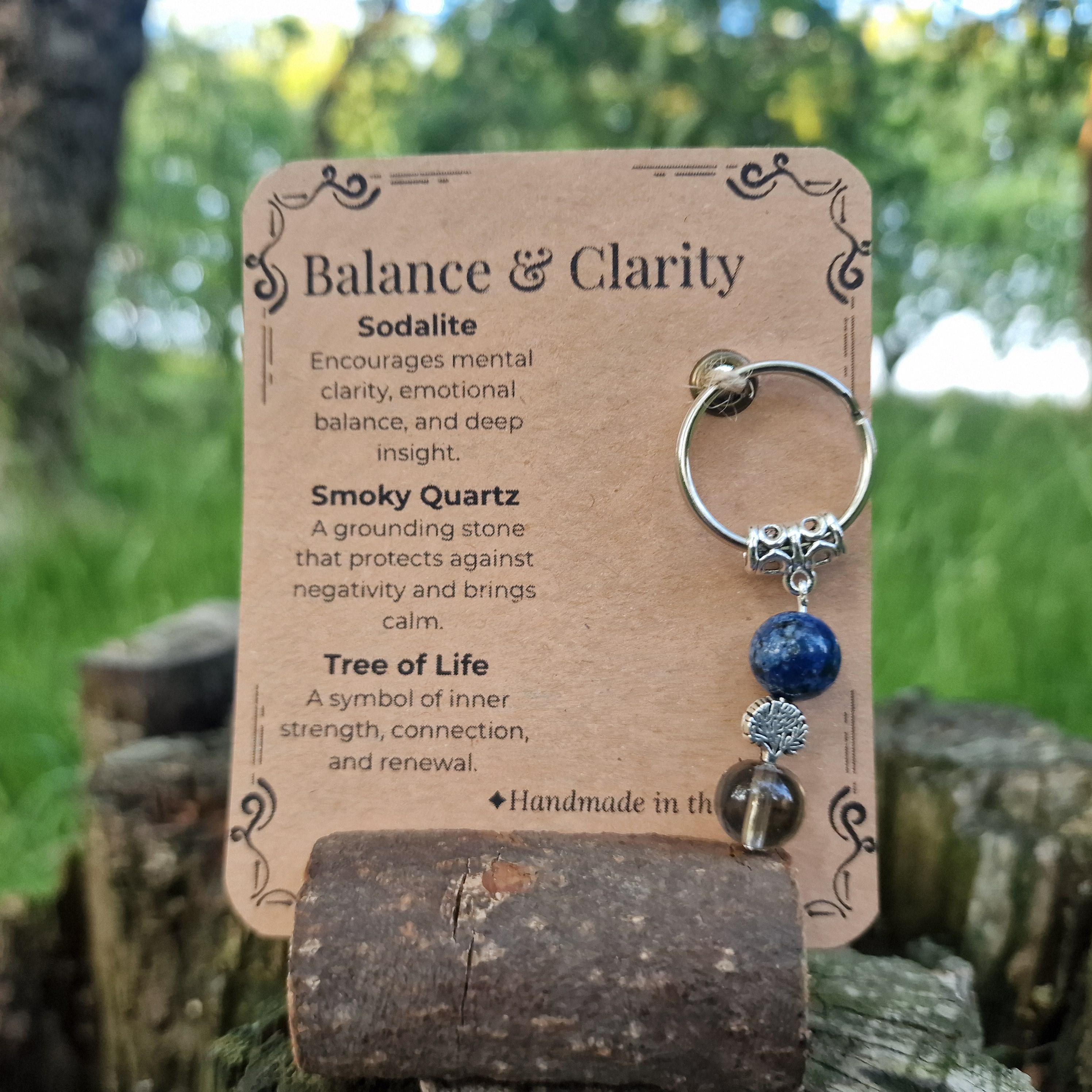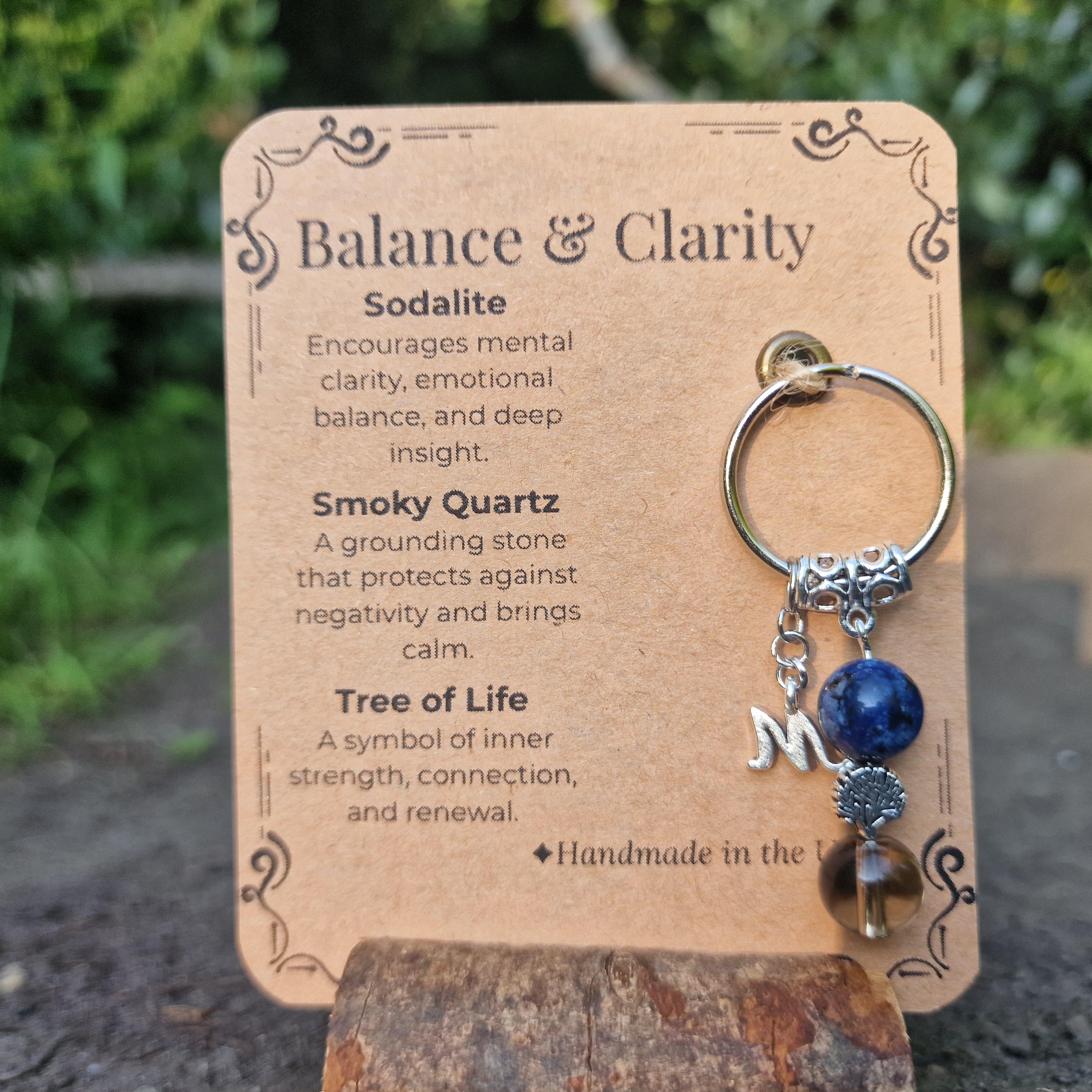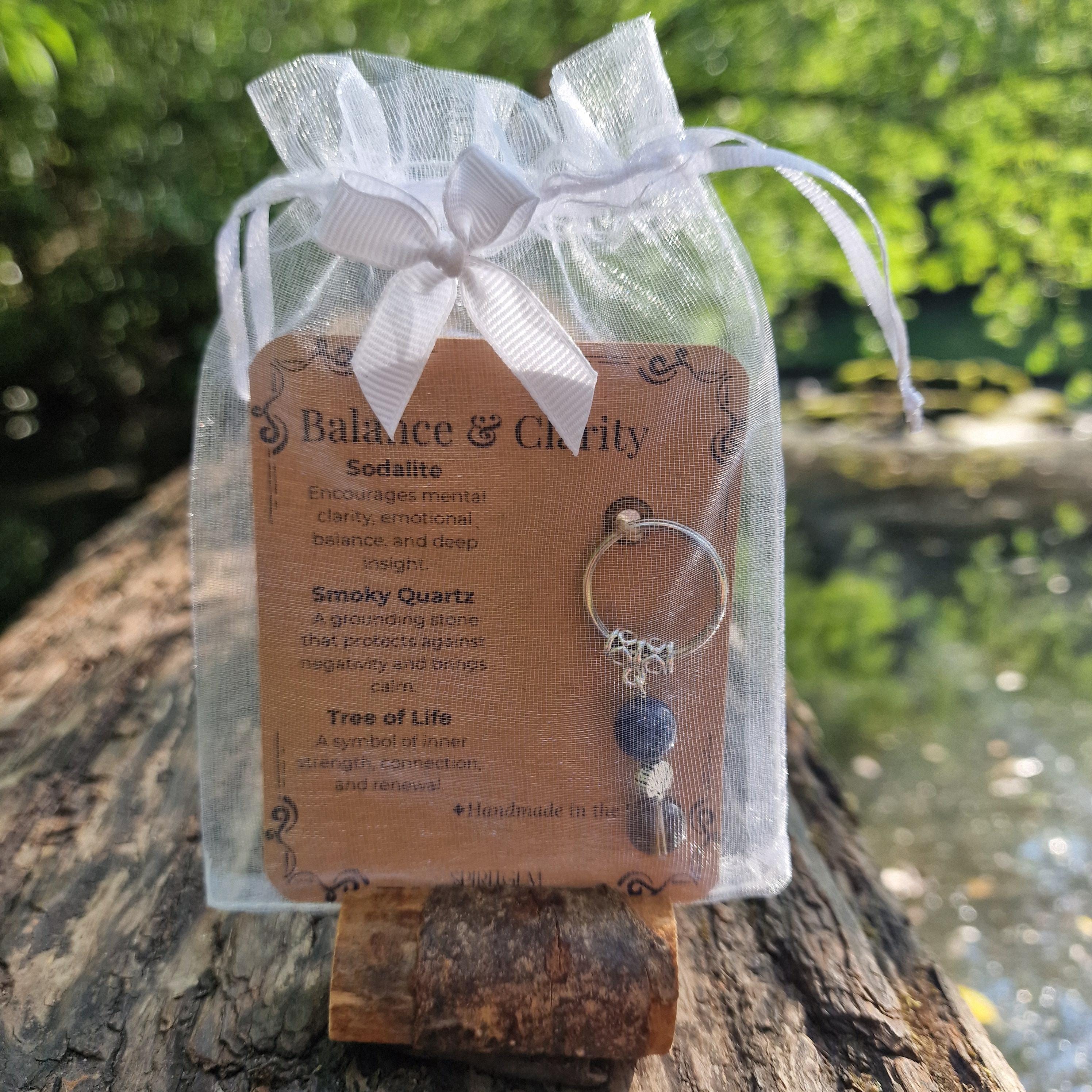 Personalized Healing Crystal Keyring: Sodalite, Smoky Quartz, Tree of Life Charm
