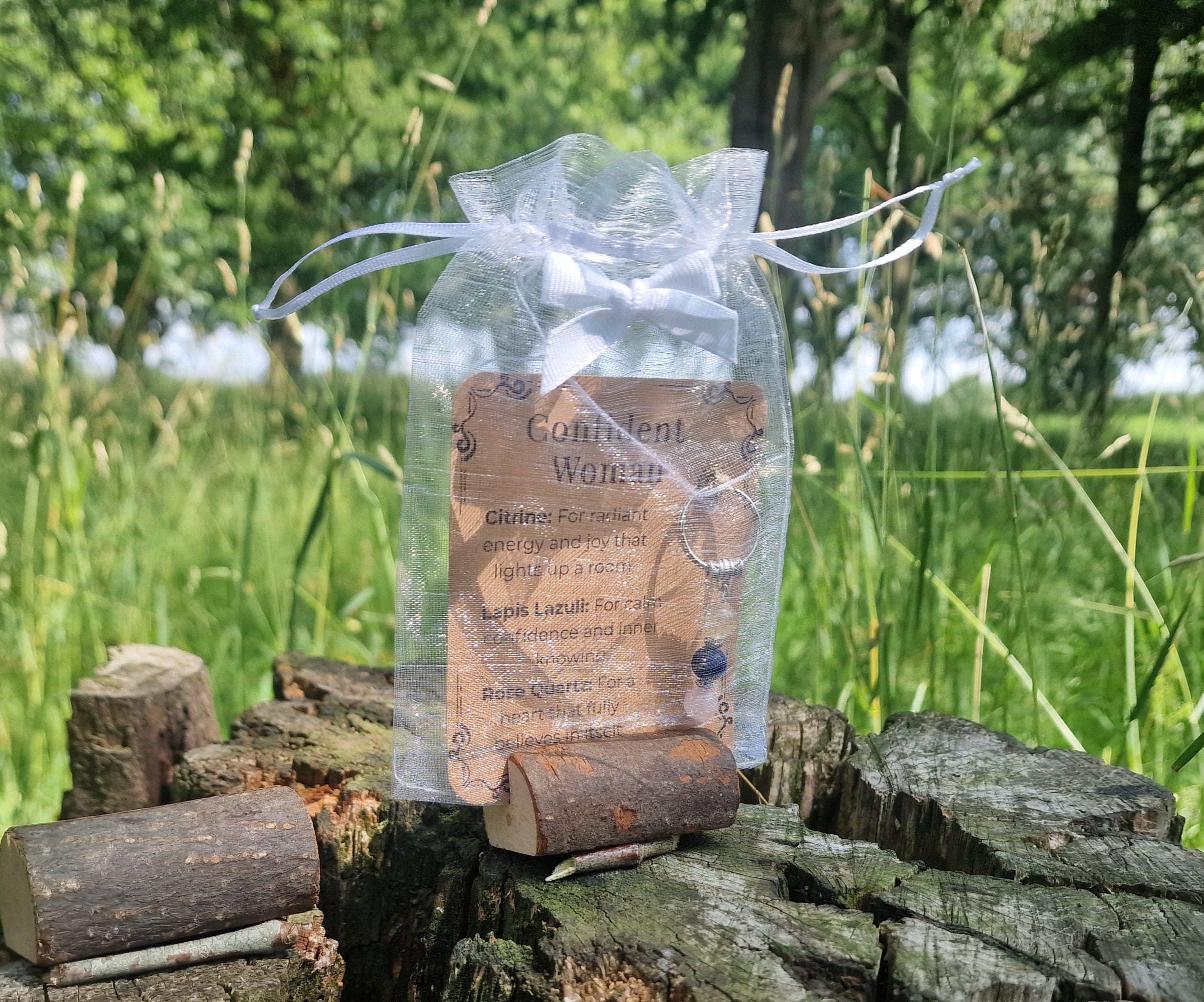 Includes a printed meaning card and gift ready organza bag.