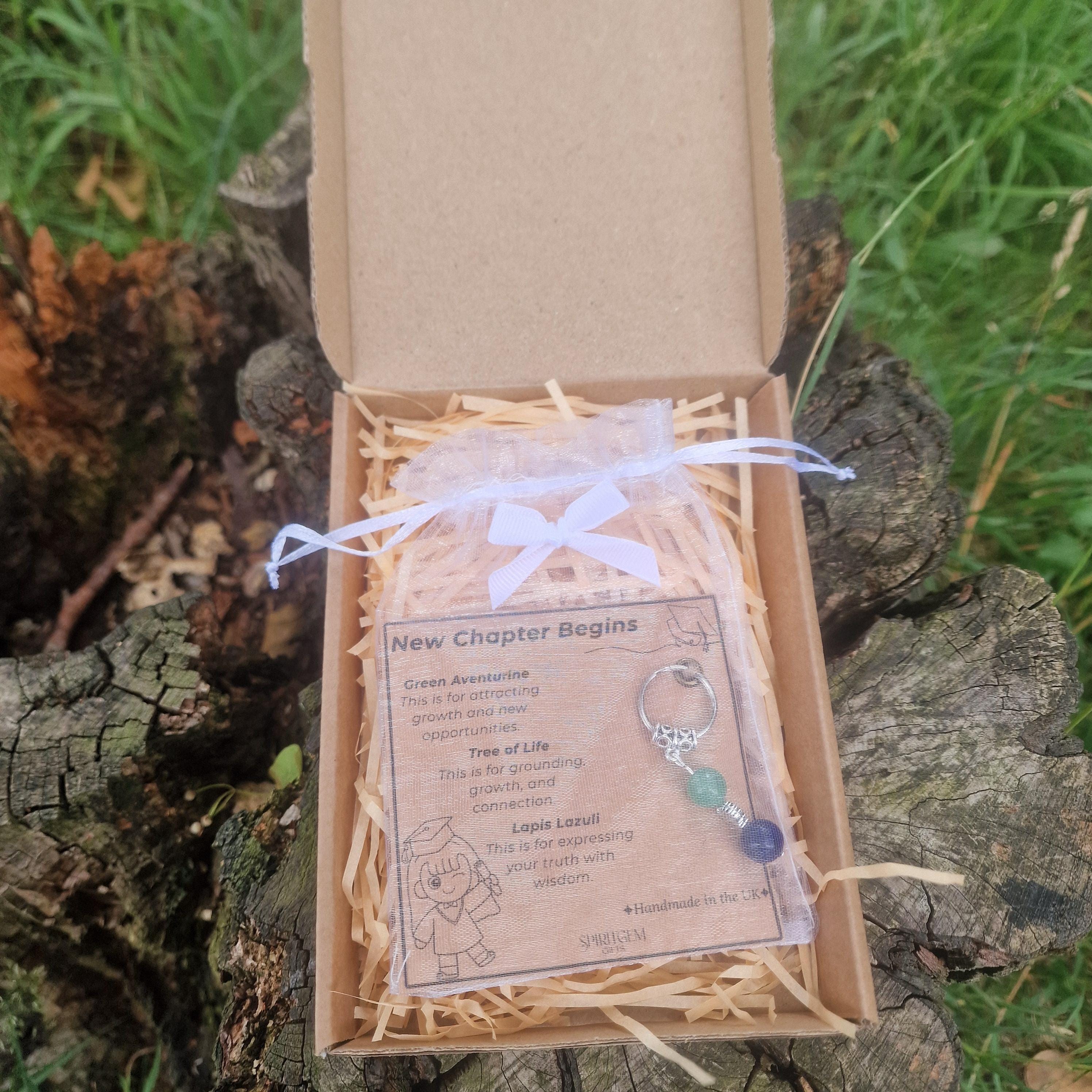 This set comes complete with a printed meaning card, a symbolic charm, a reusable organza pouch and eco-friendly kraft box. Ideal for high school, college or university graduates.