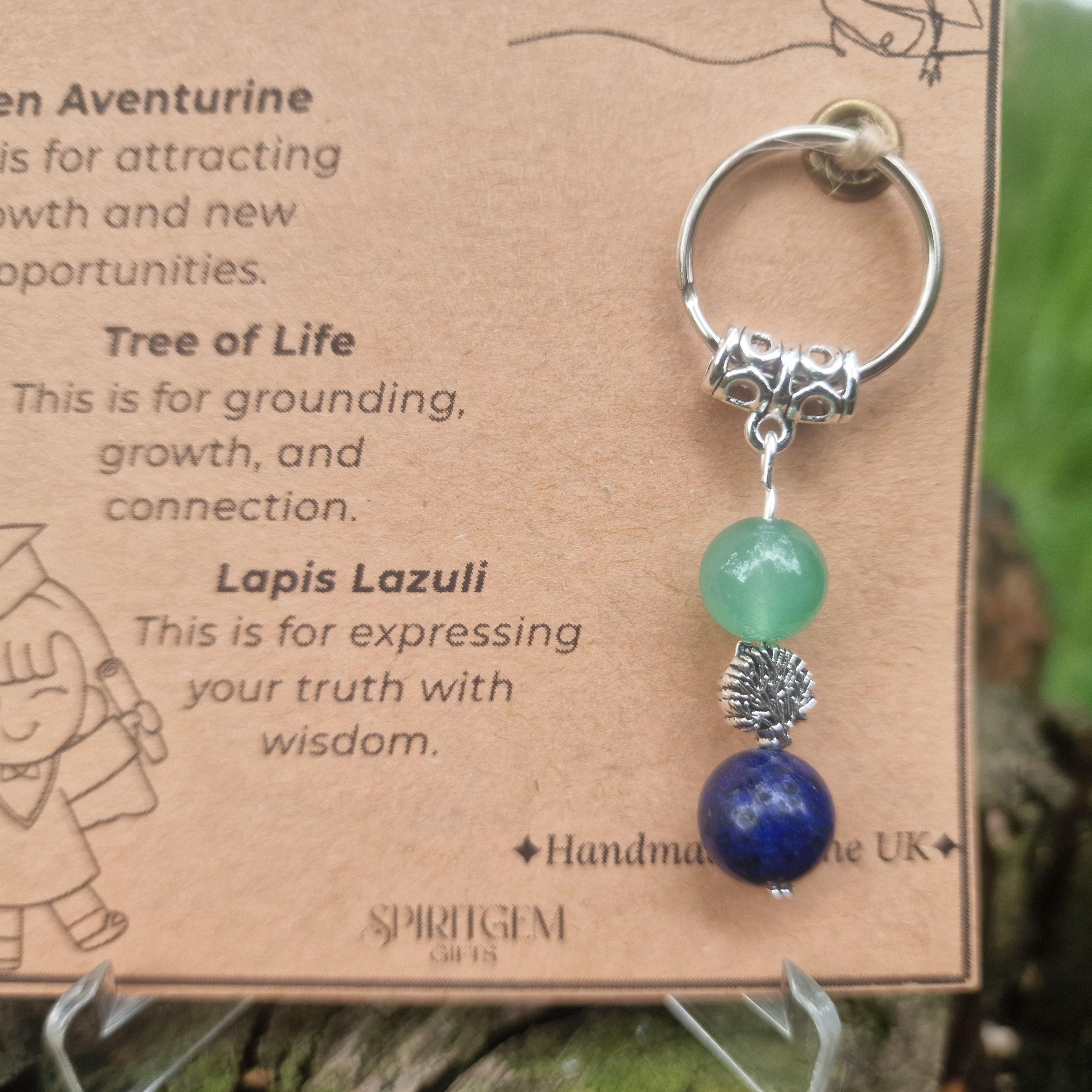 Each keyring is handmade in the UK and includes three carefully chosen 8mm natural crystals:
