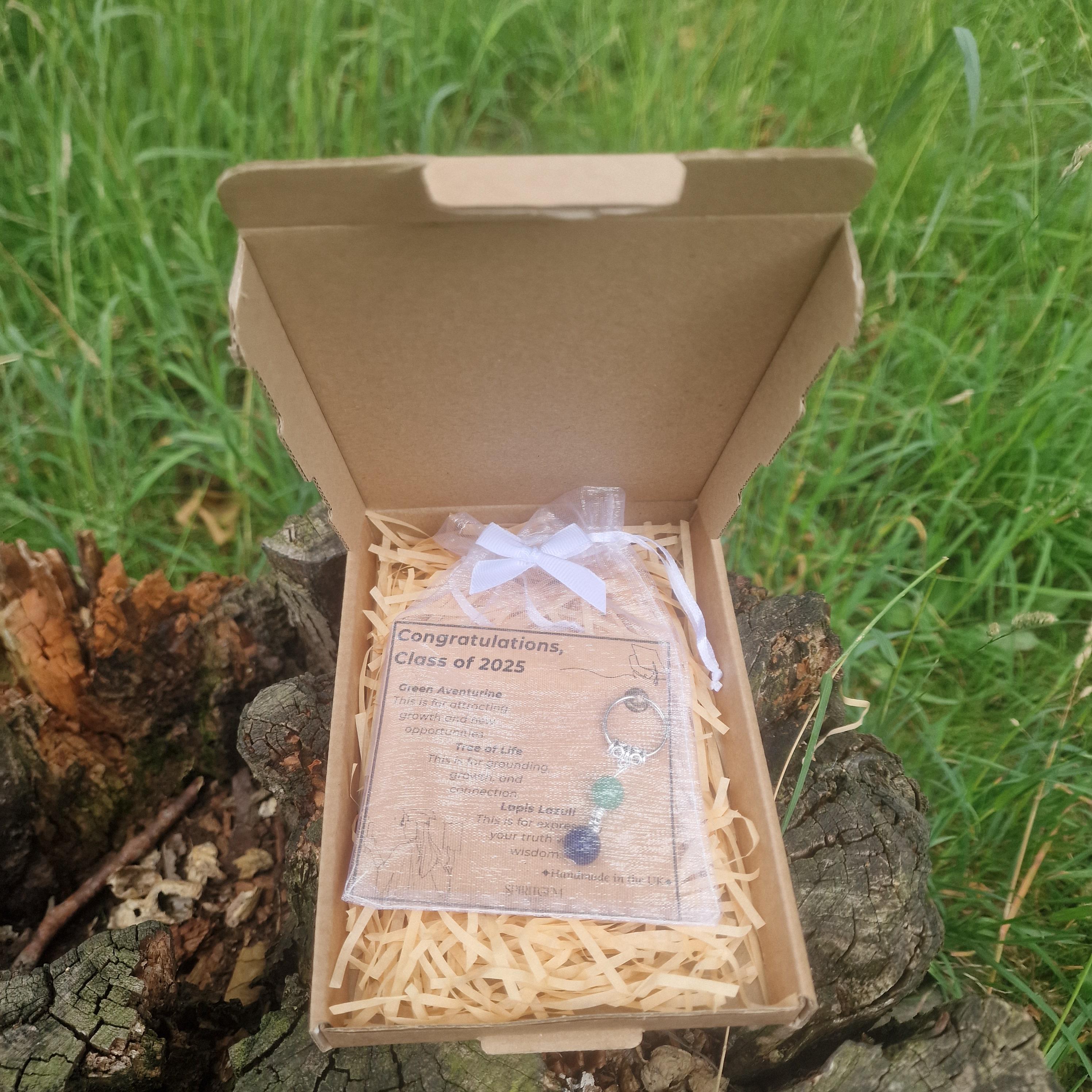 This gift set includes a printed meaning card, symbolic charm, reusable organza pouch and eco-conscious gift box. It's ideal for high school, college or university graduates, and arrives ready to gift.