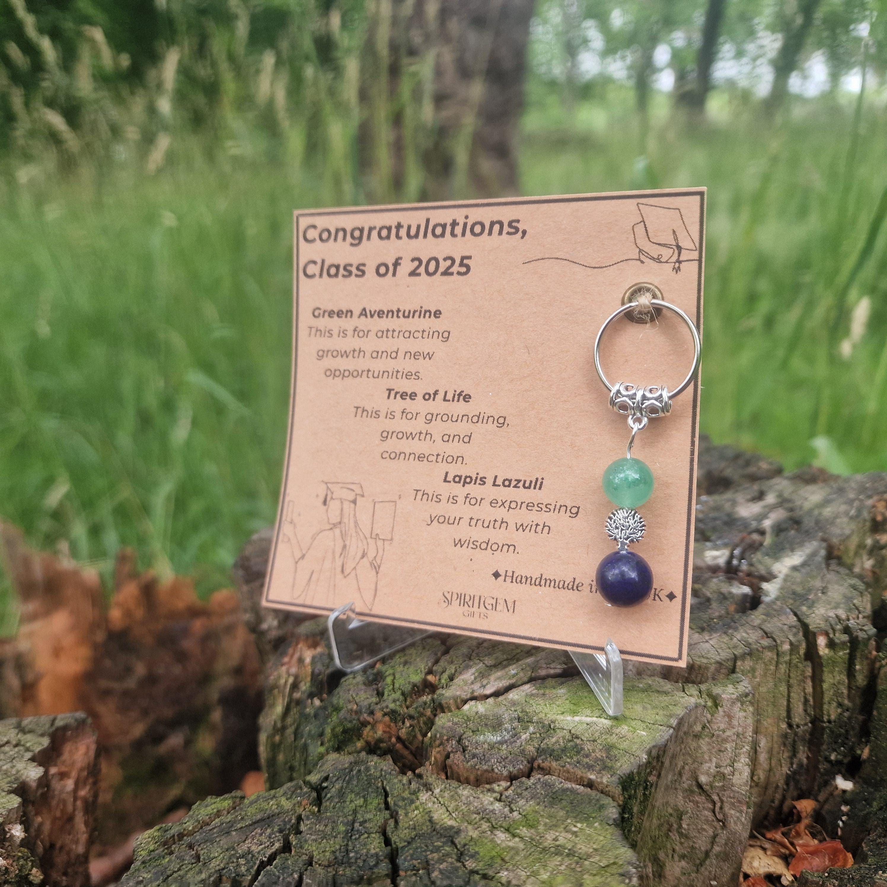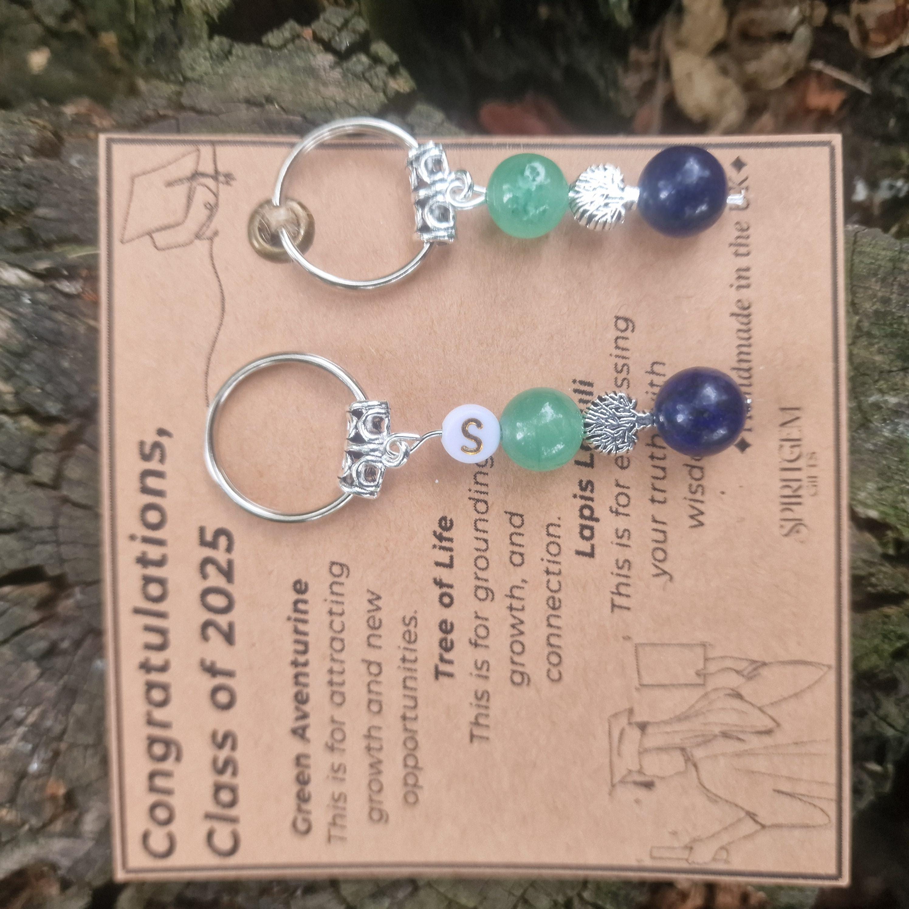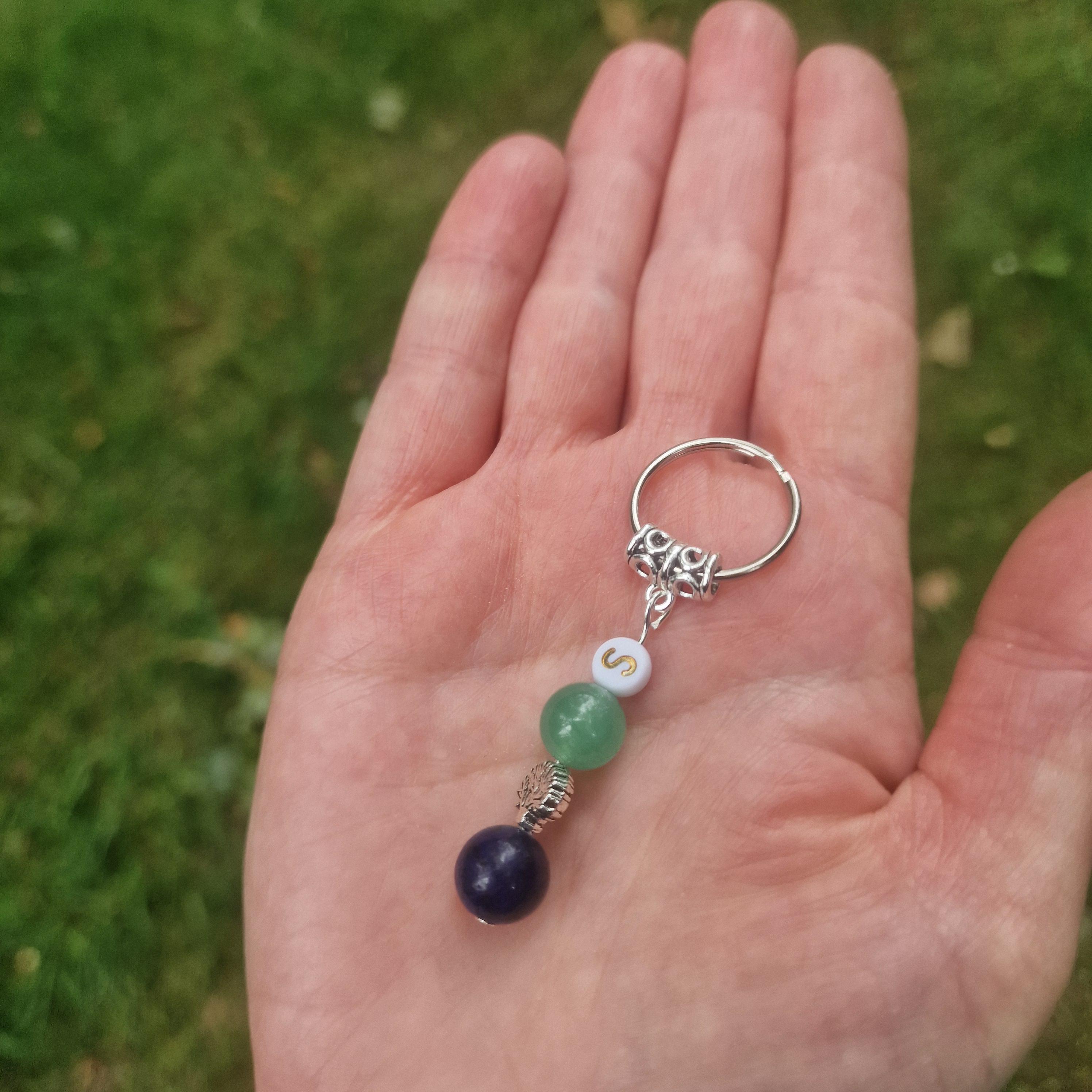 Each keyring is handmade in the UK and includes two symbolic 10mm natural gemstones: