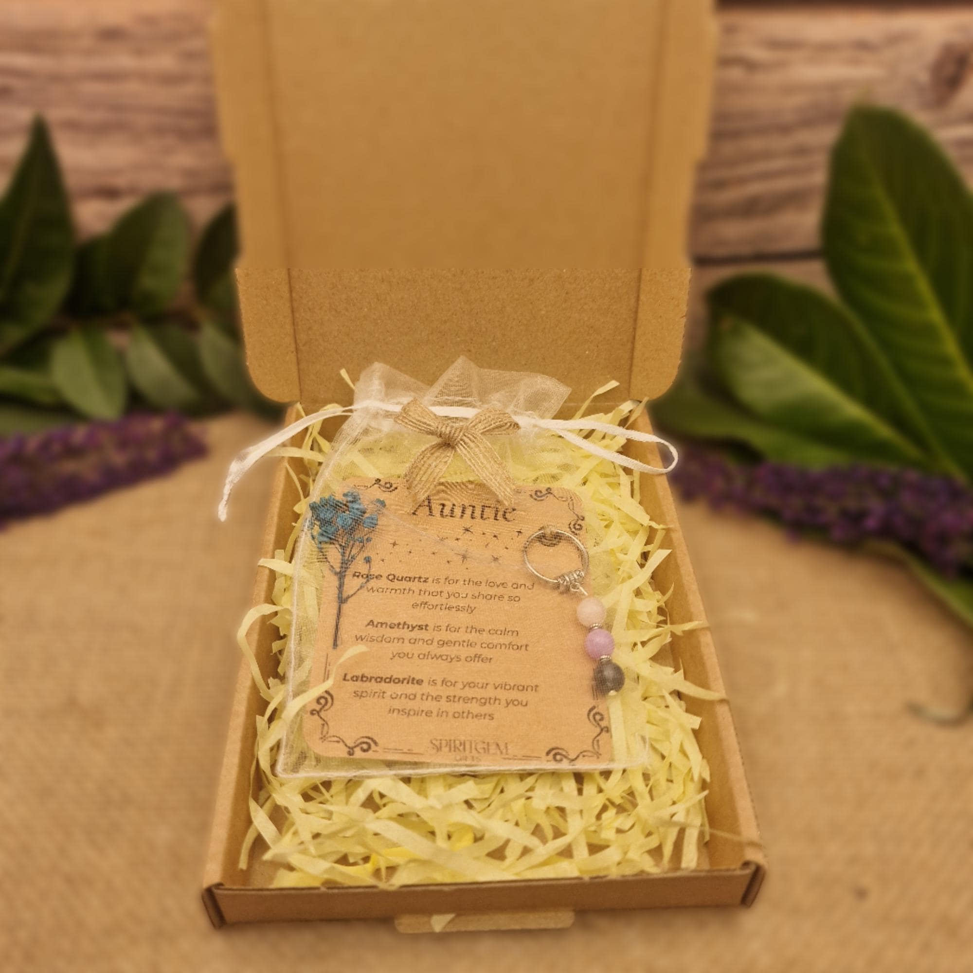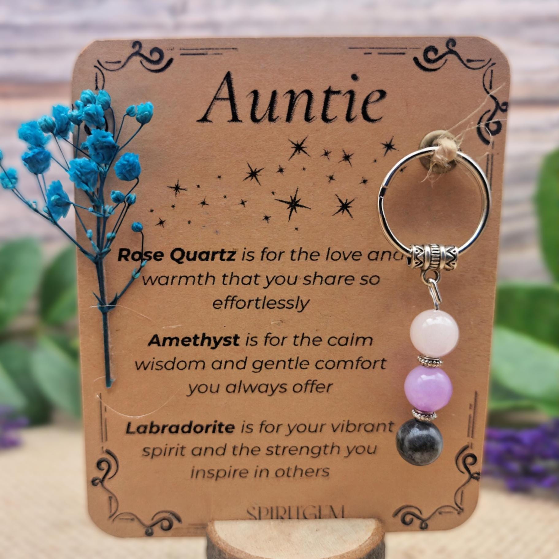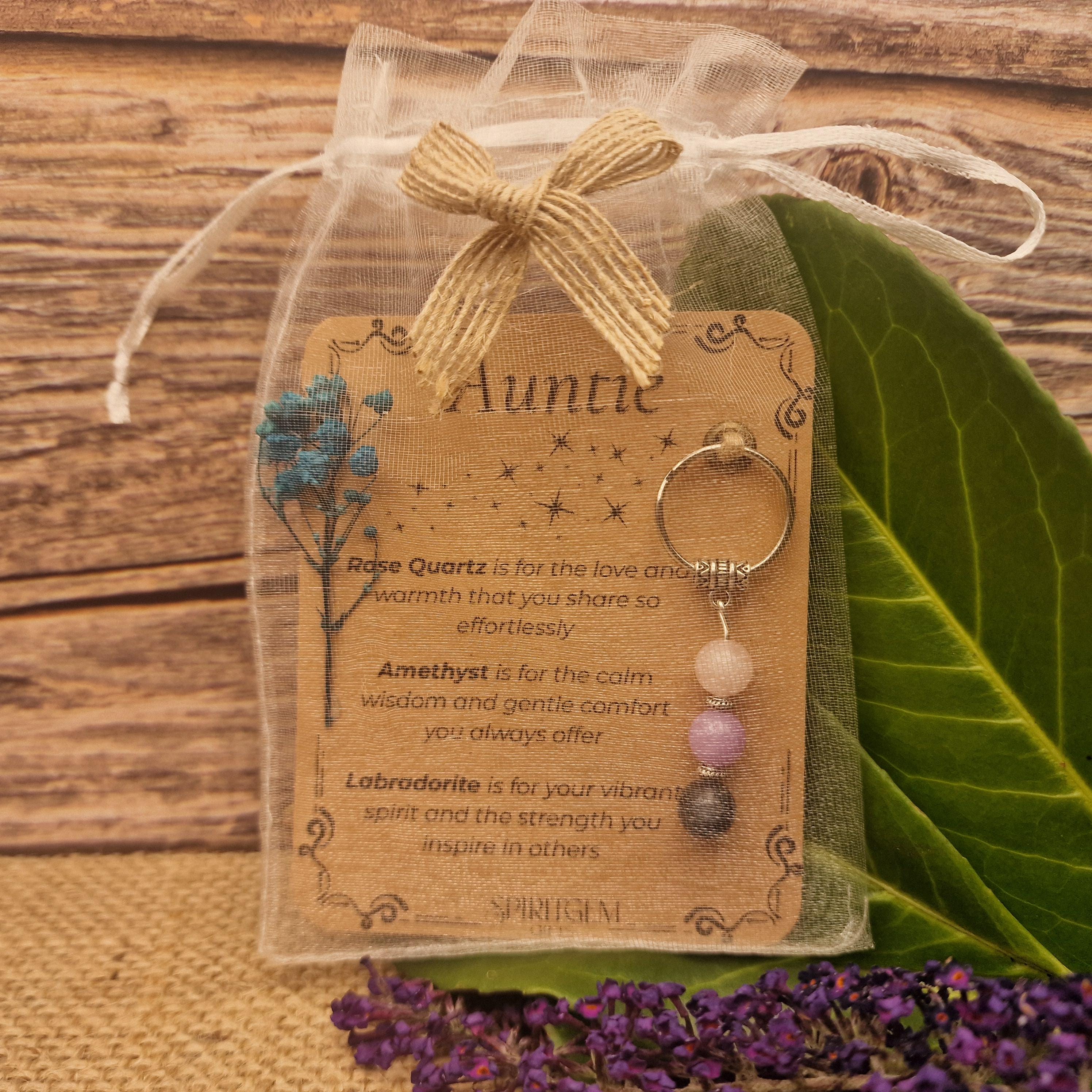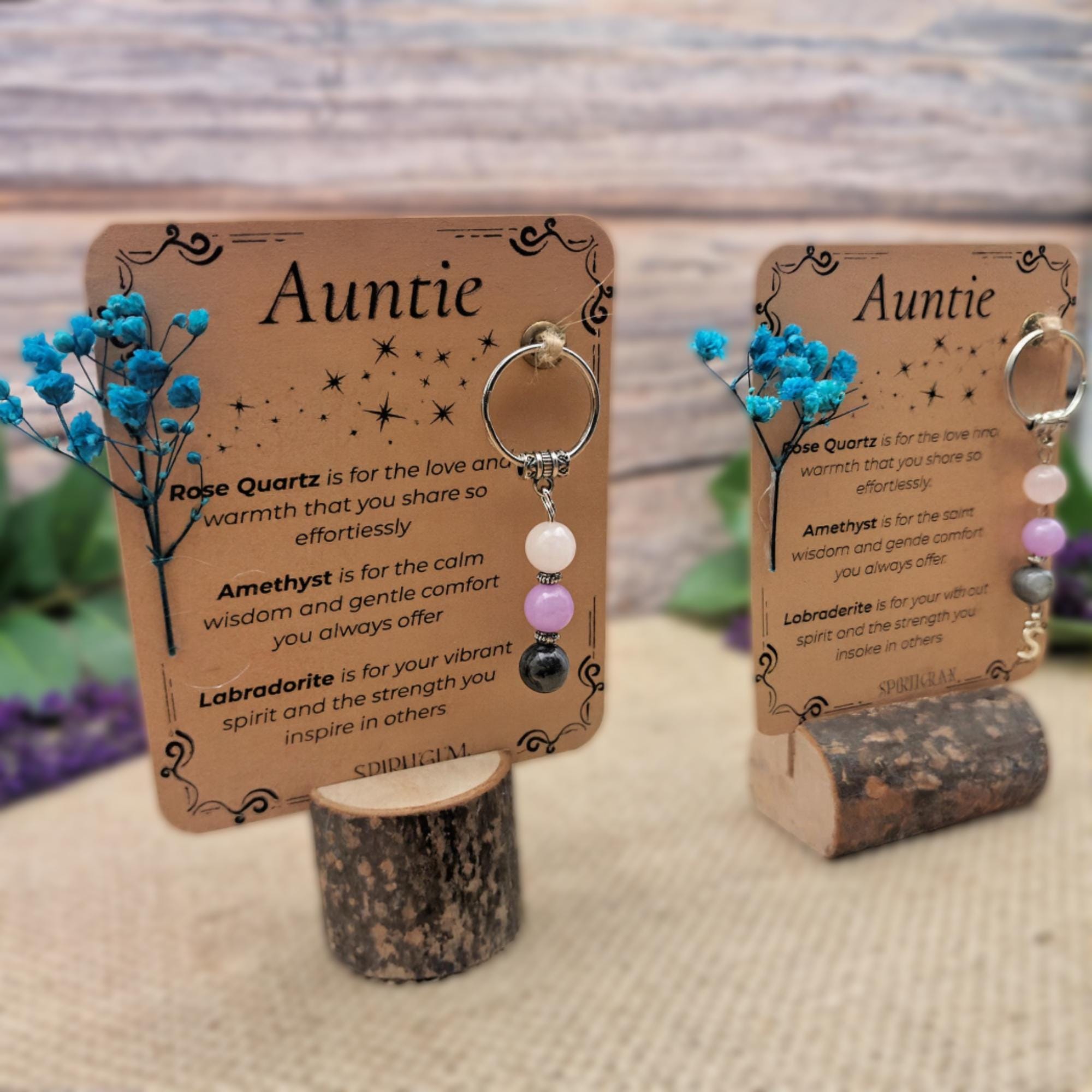 PERSONALISED AUNTIE crystal keyring gift with message card. Gemstone gift for aunt . Auntie Keepsake Best Auntie. Birthday. New Aunts gift
