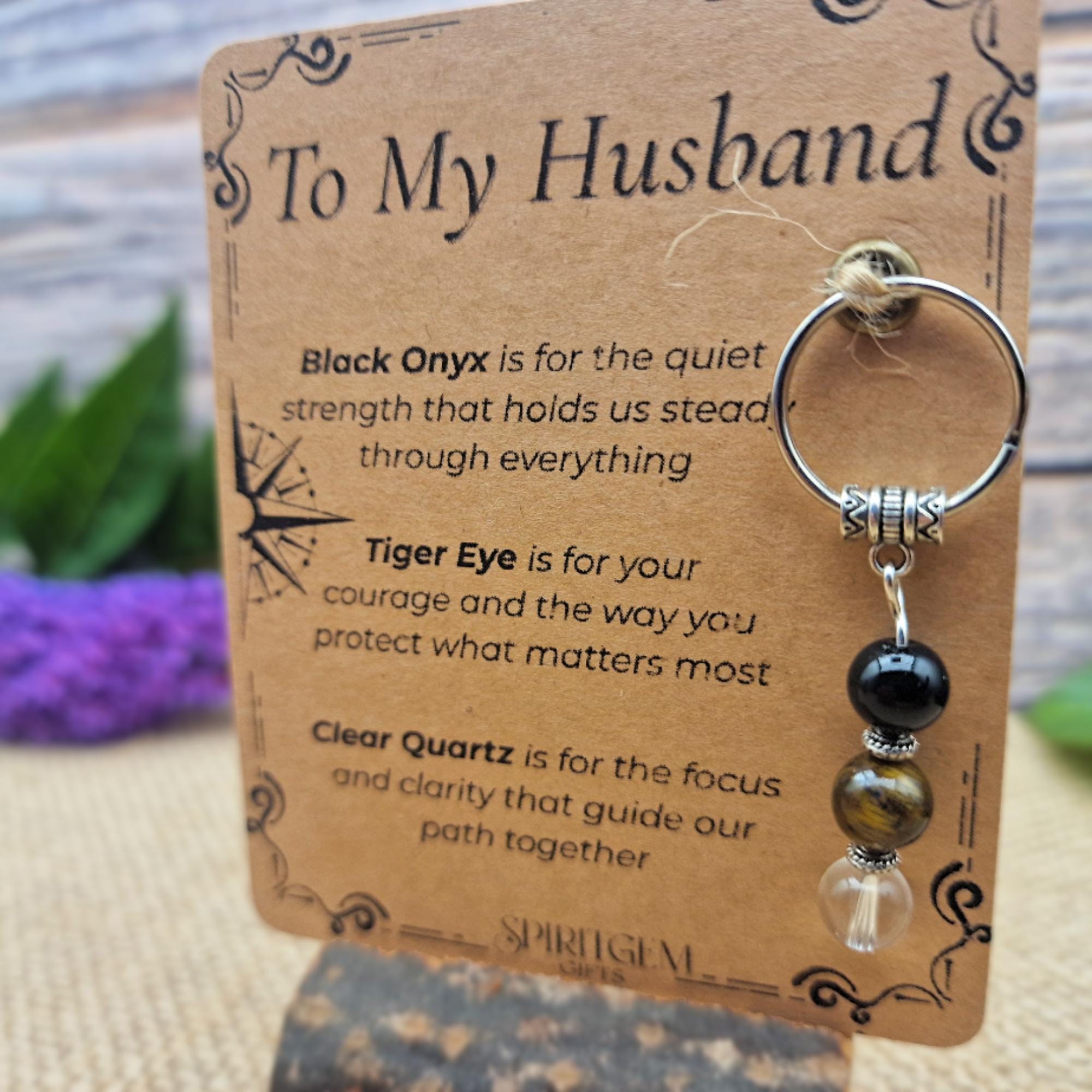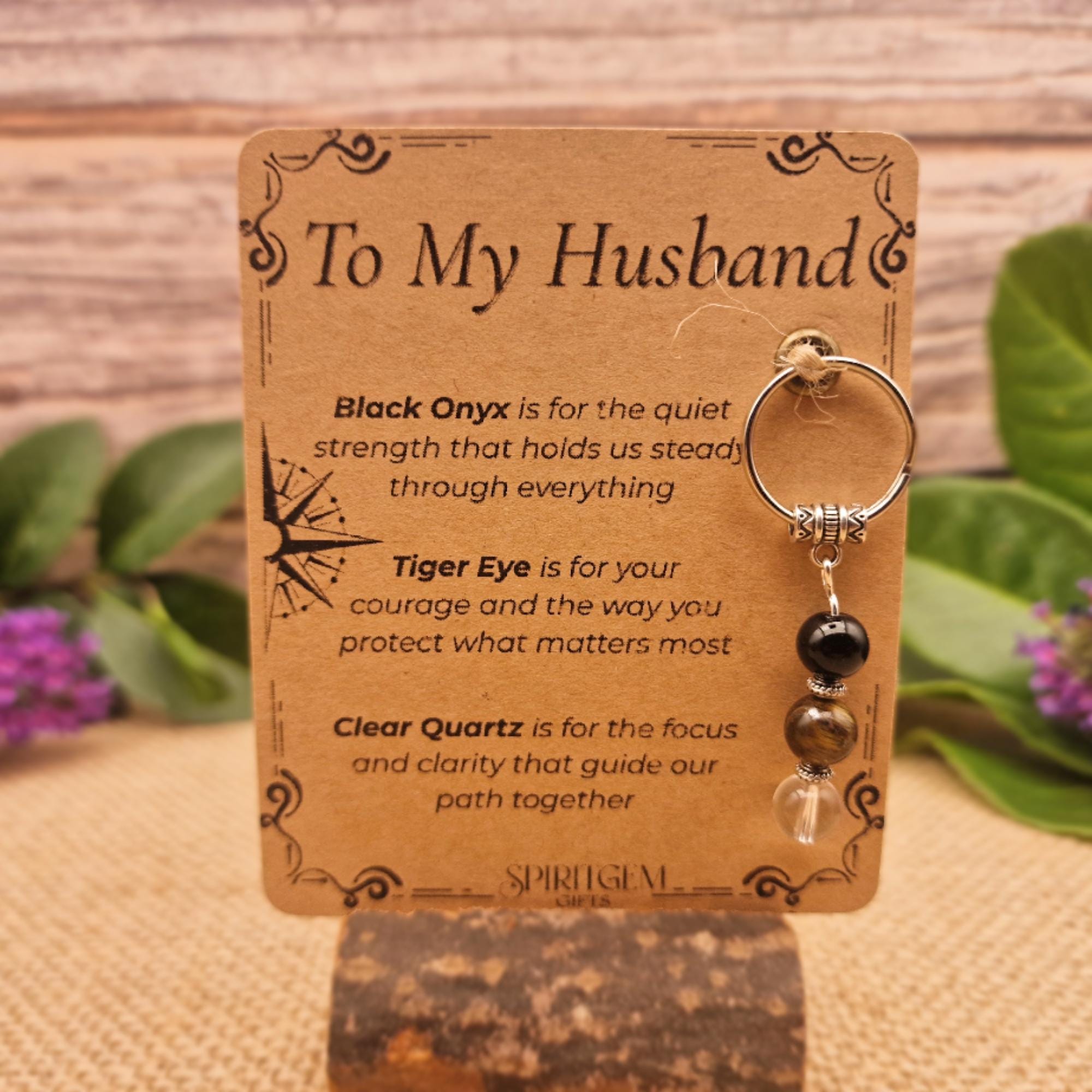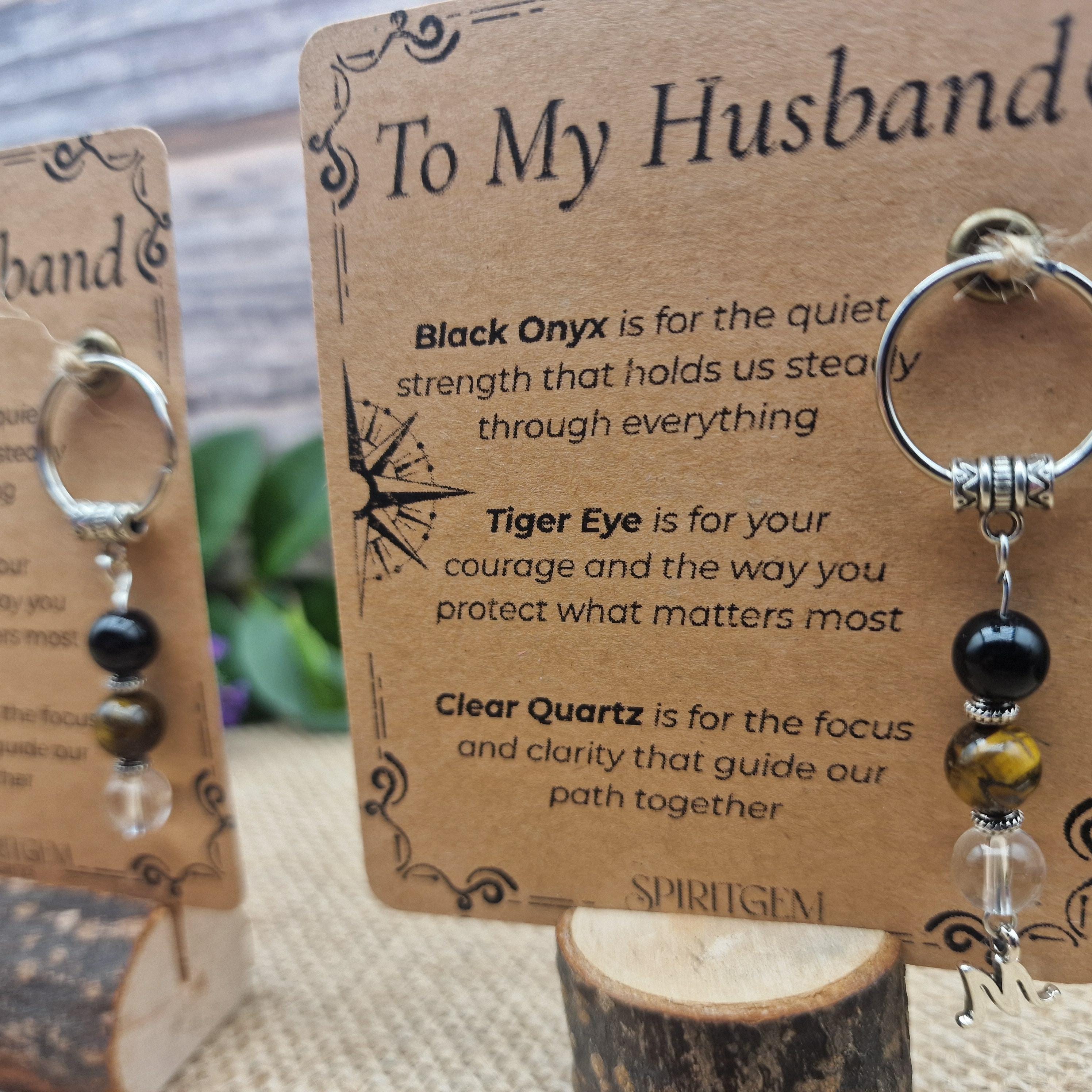 PERSONALISED HUSBAND keyring. Gift for Husband from Wife, Crystal Keyring with Meaning, Anniversary or Birthday Keepsake for Him