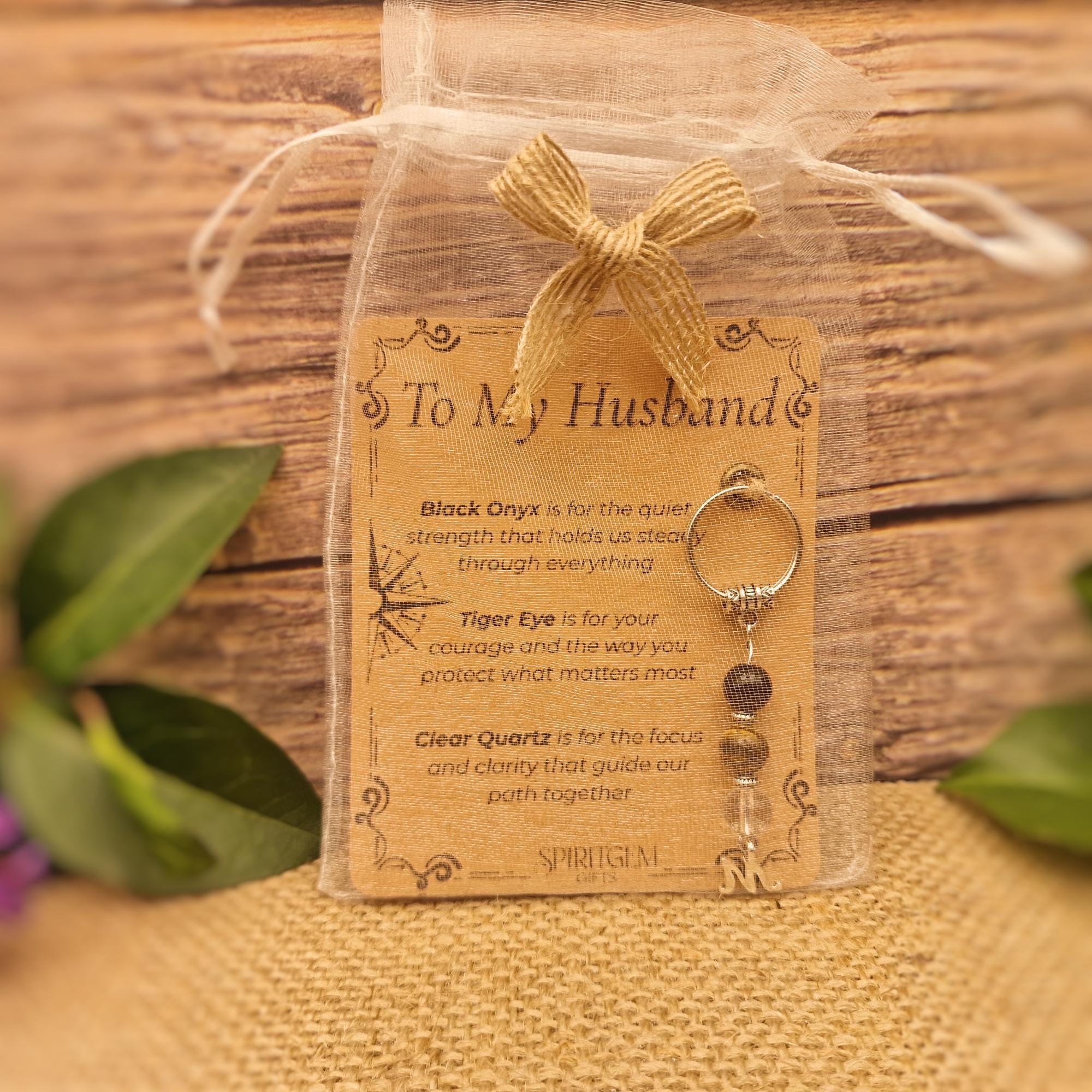 This personalised crystal keyring is a meaningful way to honour your husband a gift that speaks to his quiet strength, courage, and love.