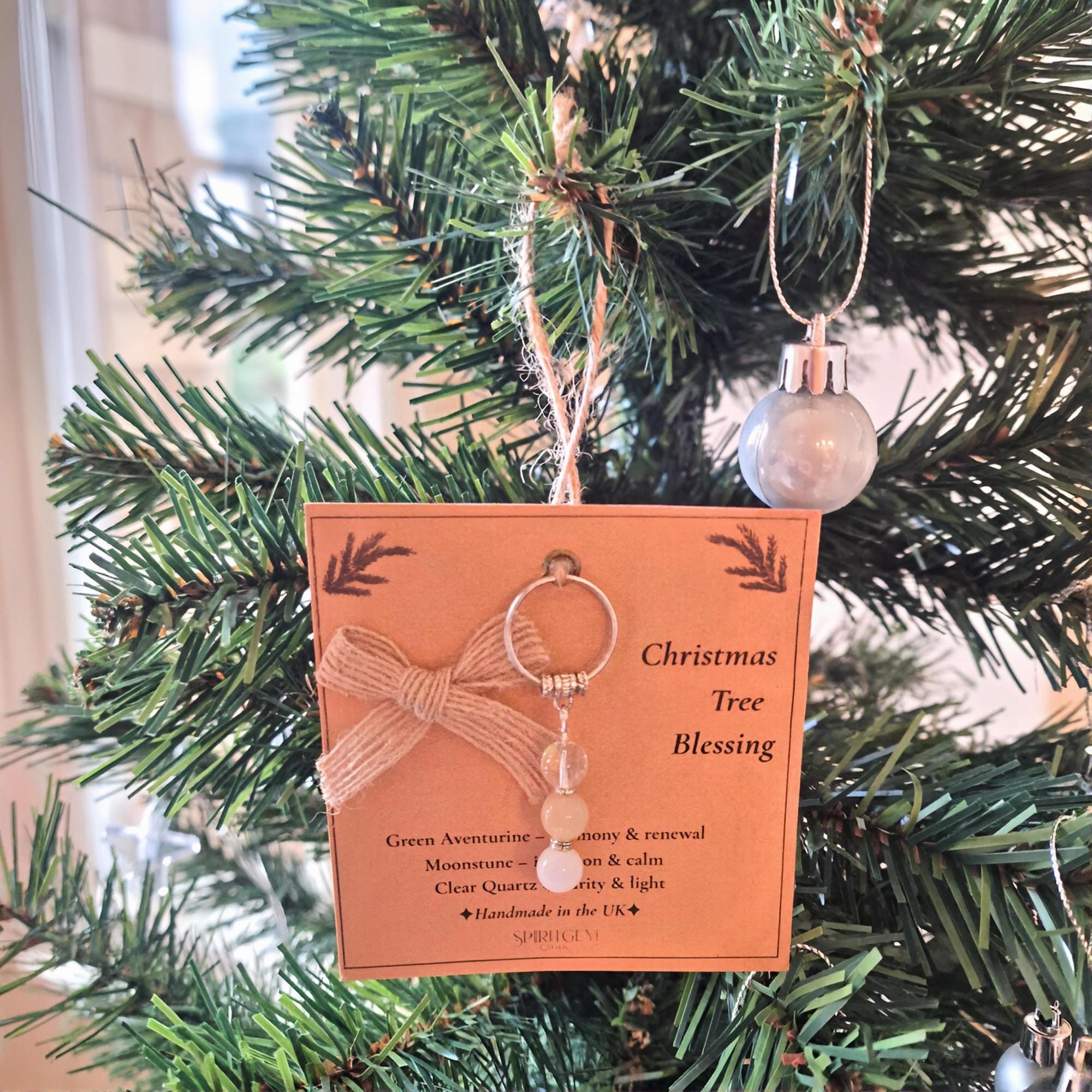 Christmas Tree Blessing Crystal Ornament Gift Harmony Calm Clarity Rustic Handmade UK Spiritual Keepsake for Loved Ones Stocking Filler