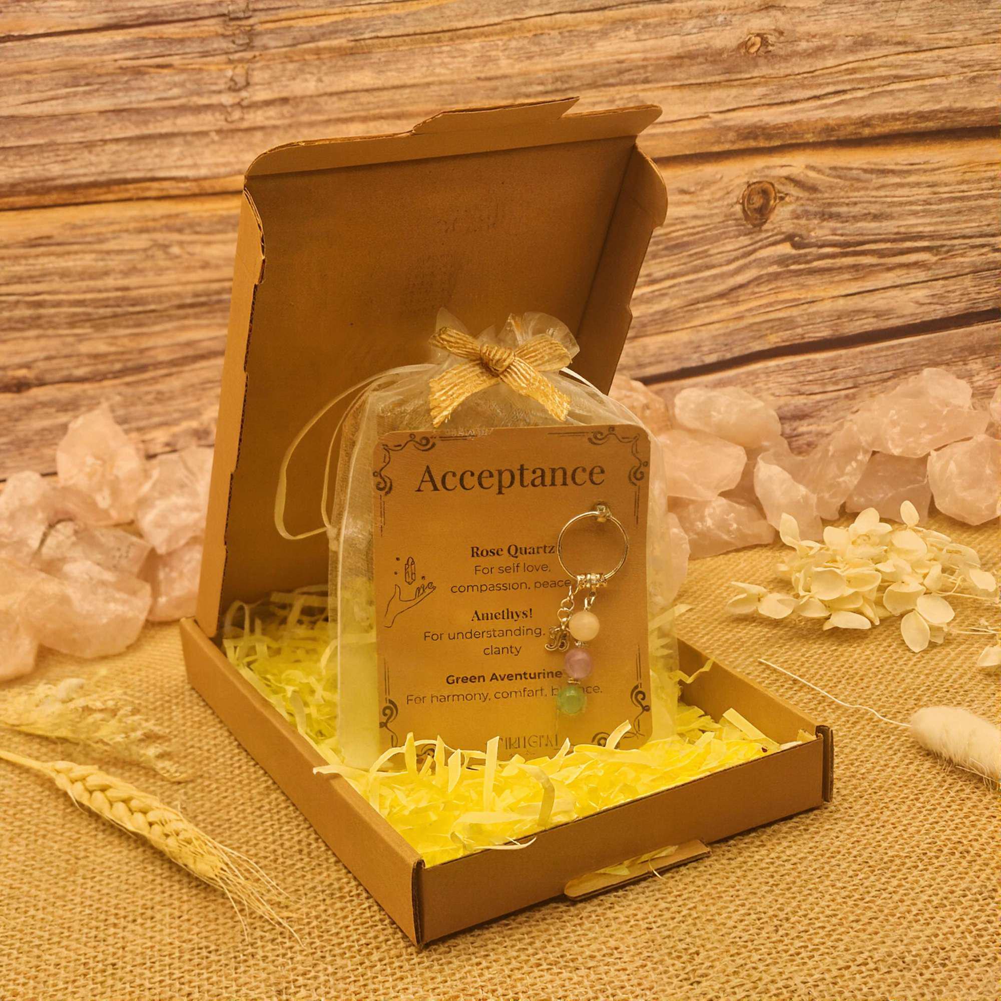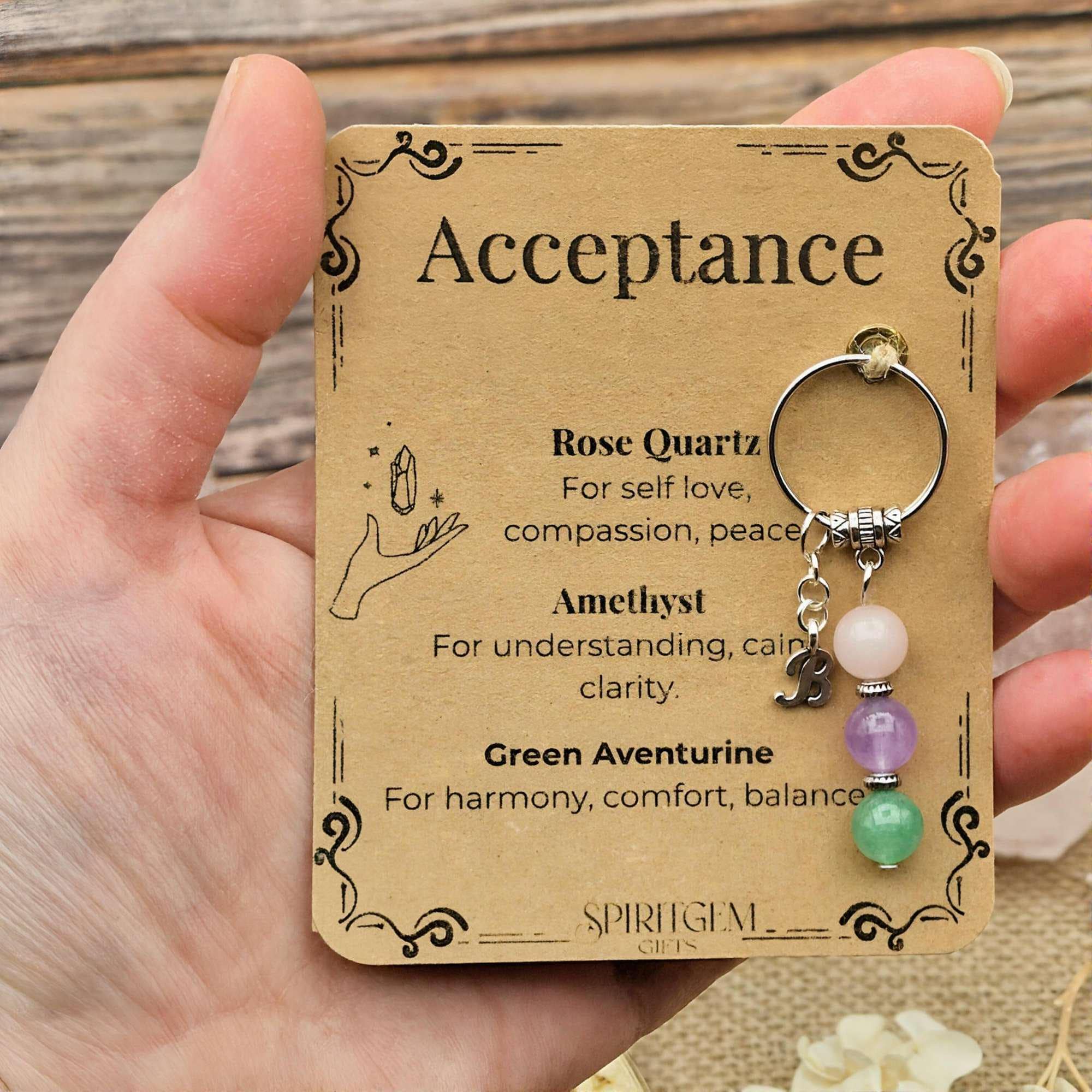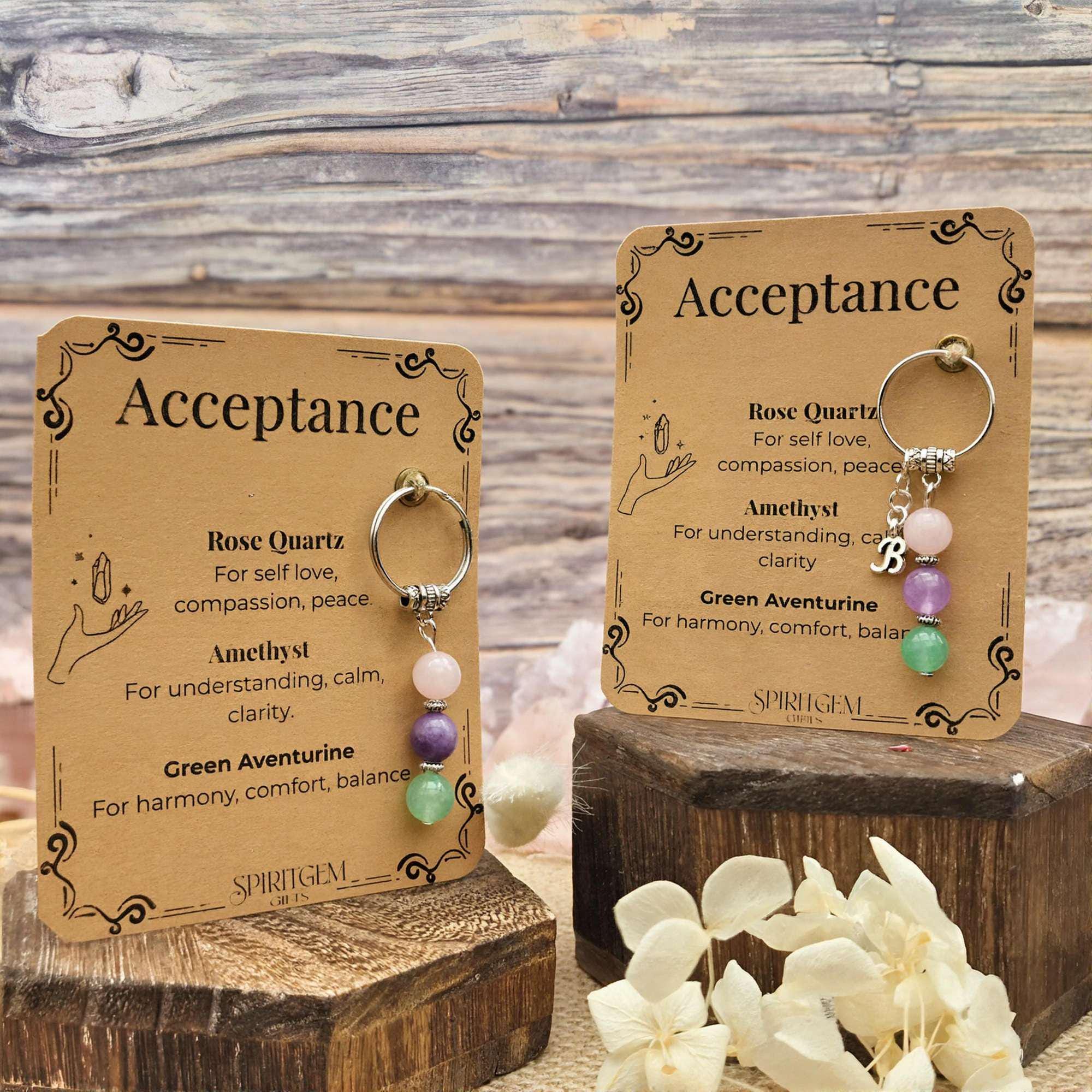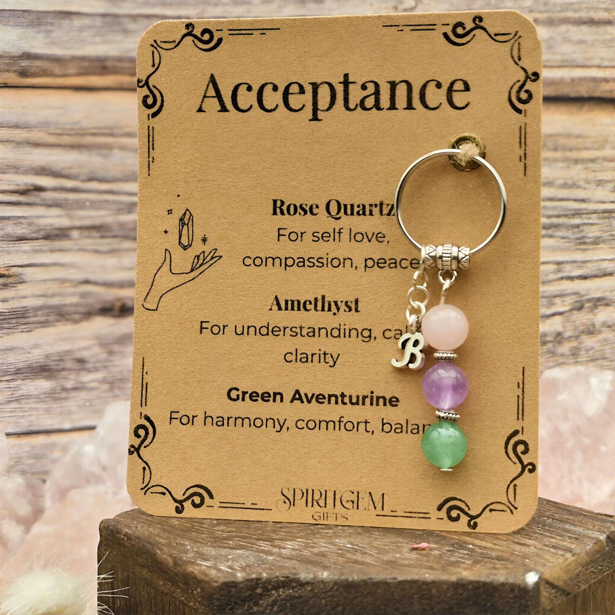 Personalised Acceptance Crystal Keyring, Self Love Gift, Breakup Healing, Divorce Support, Sobriety Comfort