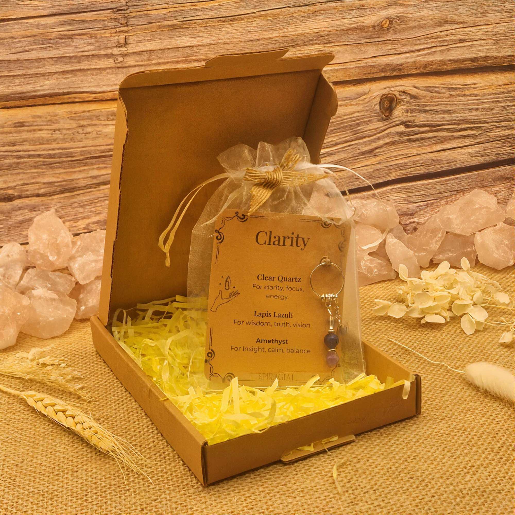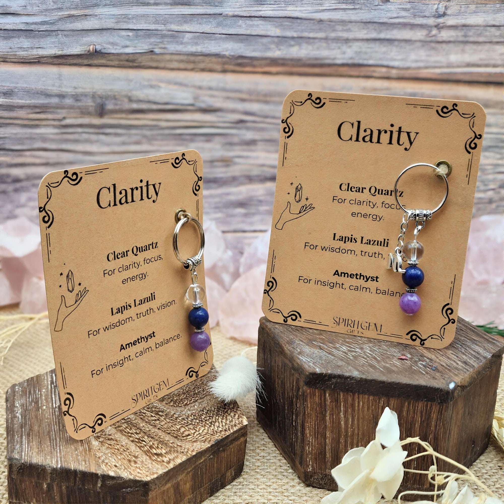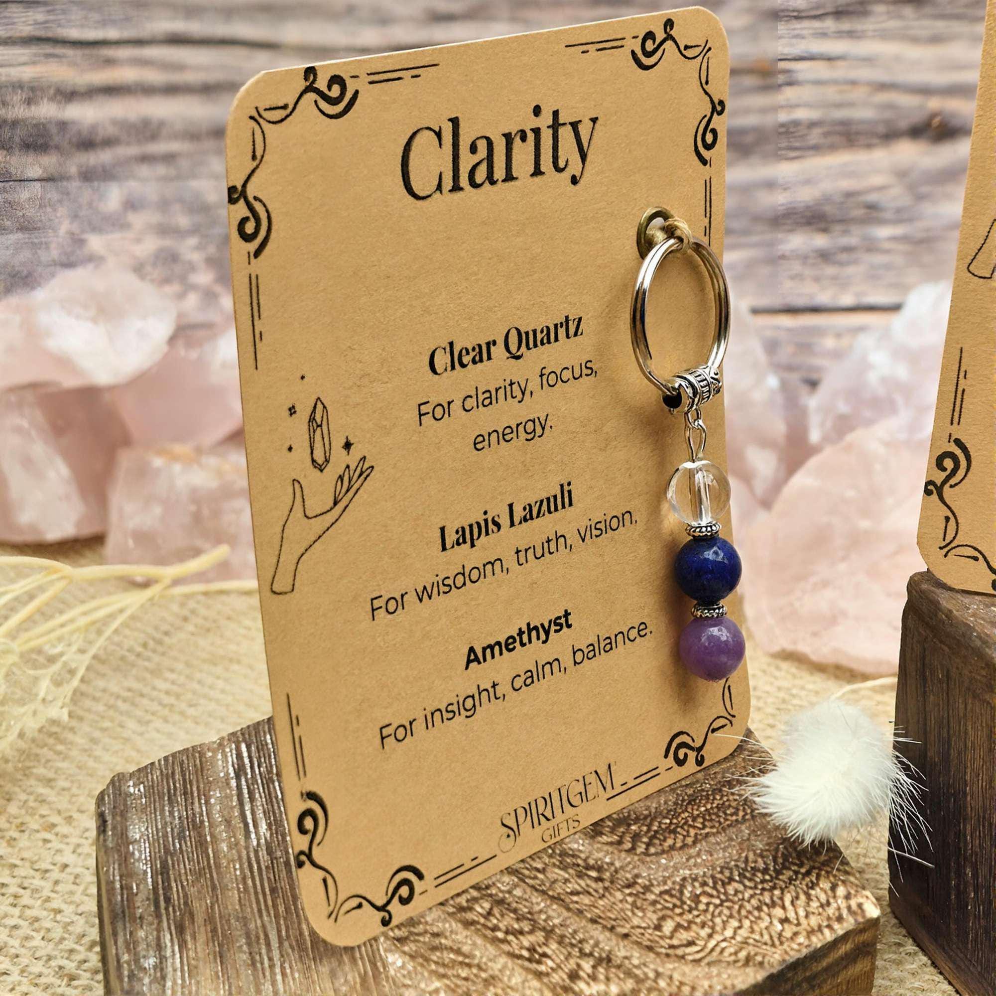 Personalised Clarity Crystal Keyring, Exam Study Focus, New Job Success, Decision Making Support, Wisdom