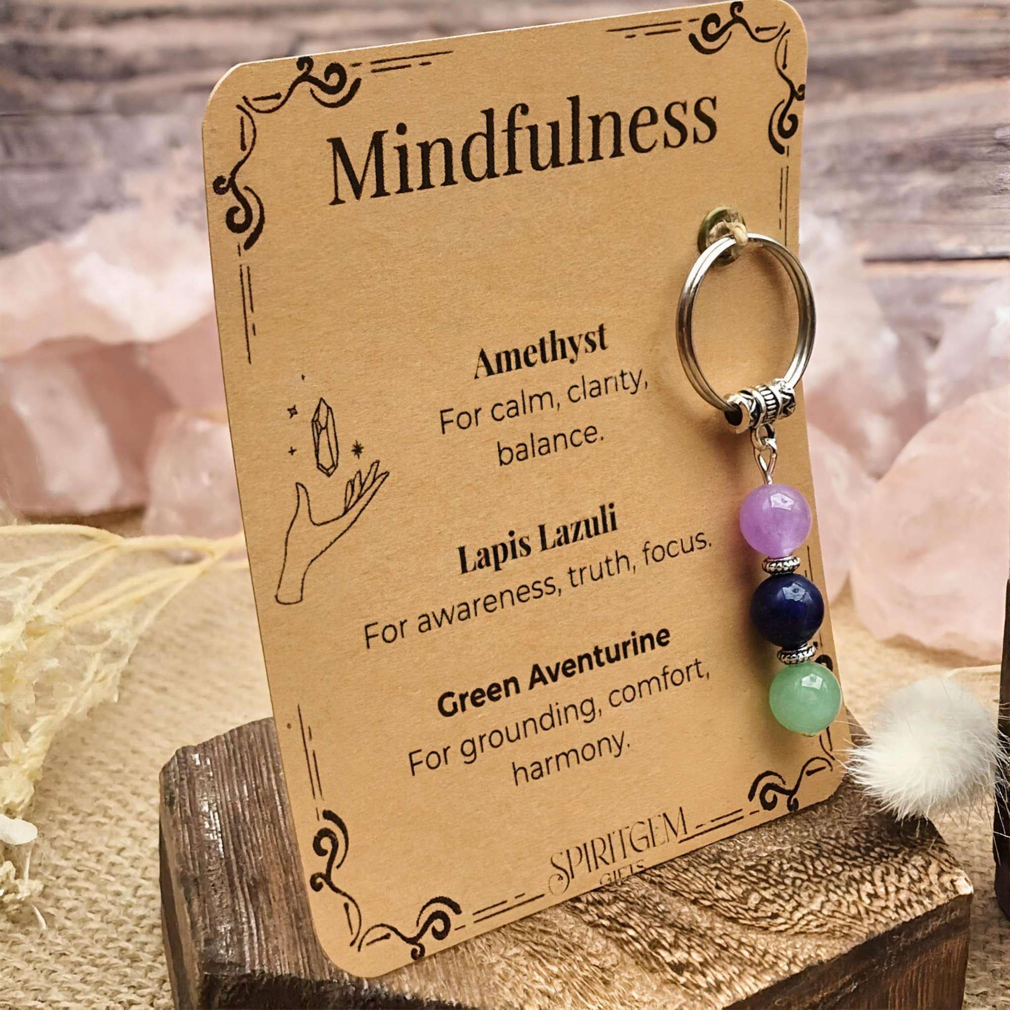 This keyring represents mindfulness, inner calm and conscious awareness. Designed as a gentle reminder to slow down, stay present and reconnect with balance throughout the day. A meaningful gift for meditation lovers, self care routines, stressful periods or anyone seeking clarity and grounding.
