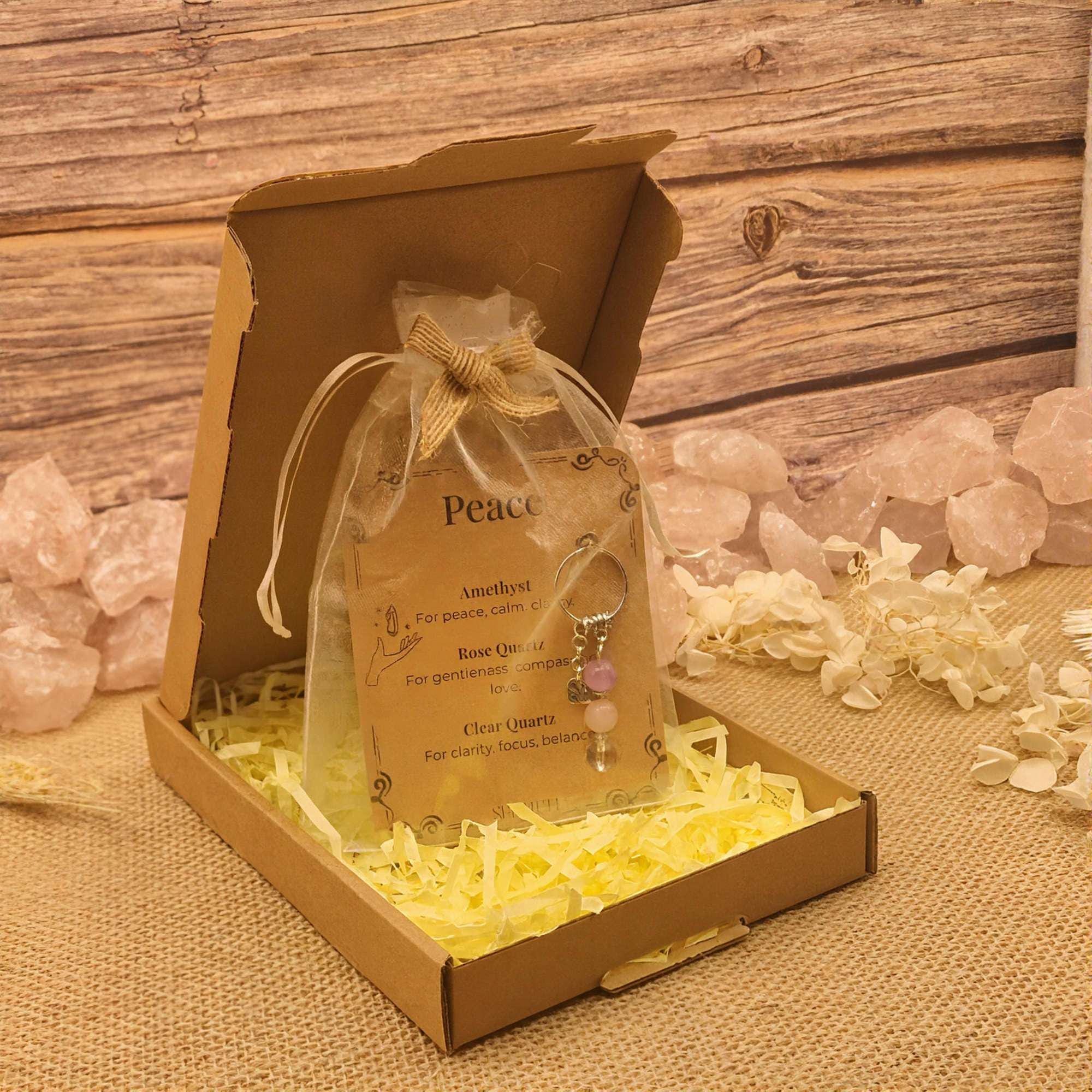 This premium keyring is created as a gentle reminder of peace, calm and inner balance. You can keep it for yourself or gift it to someone who needs comfort, harmony and emotional reassurance. You can also choose to add an initial if you'd like it to feel more personal. It arrives in a sheer organza bag with a kraft toned ribbon, ready to give straight away.