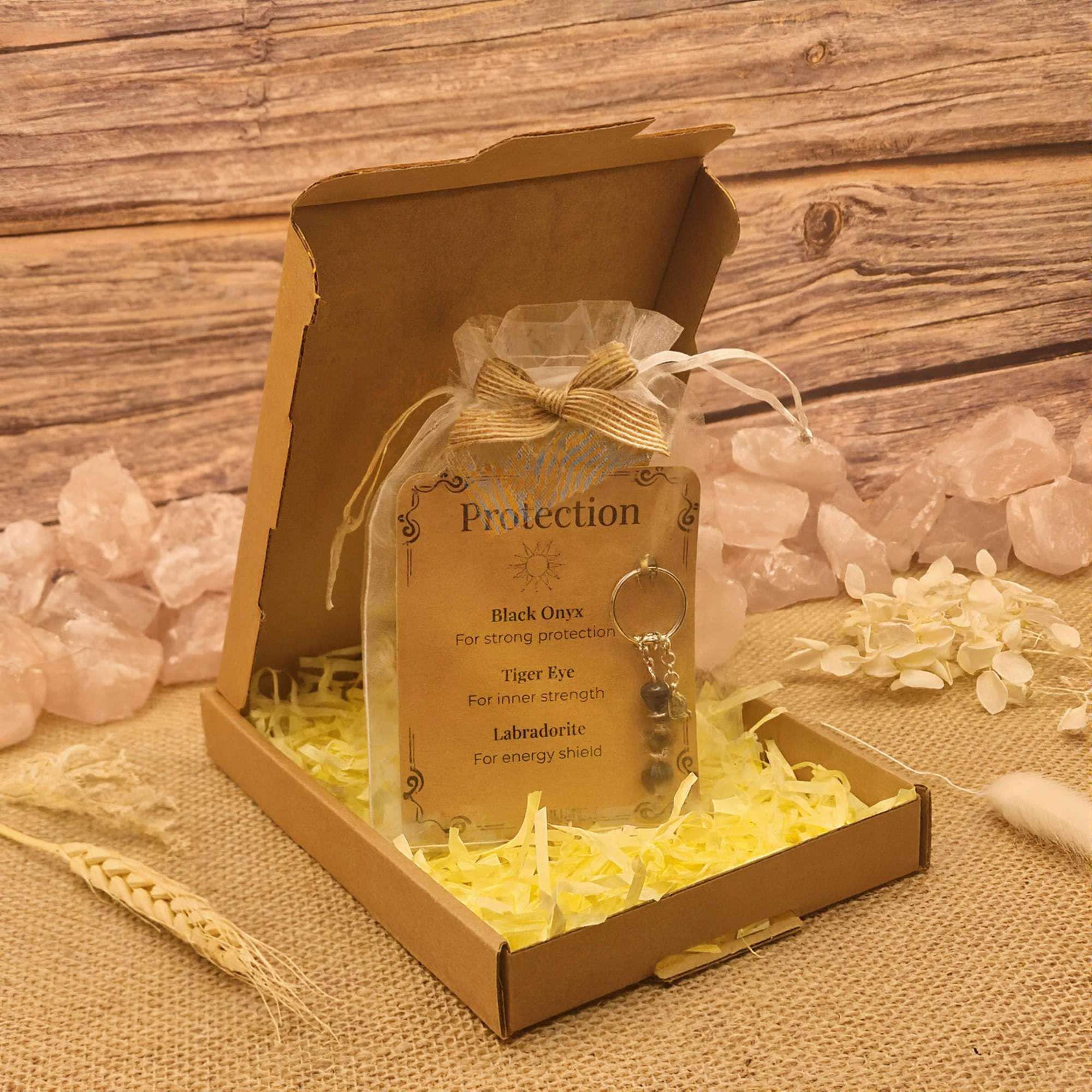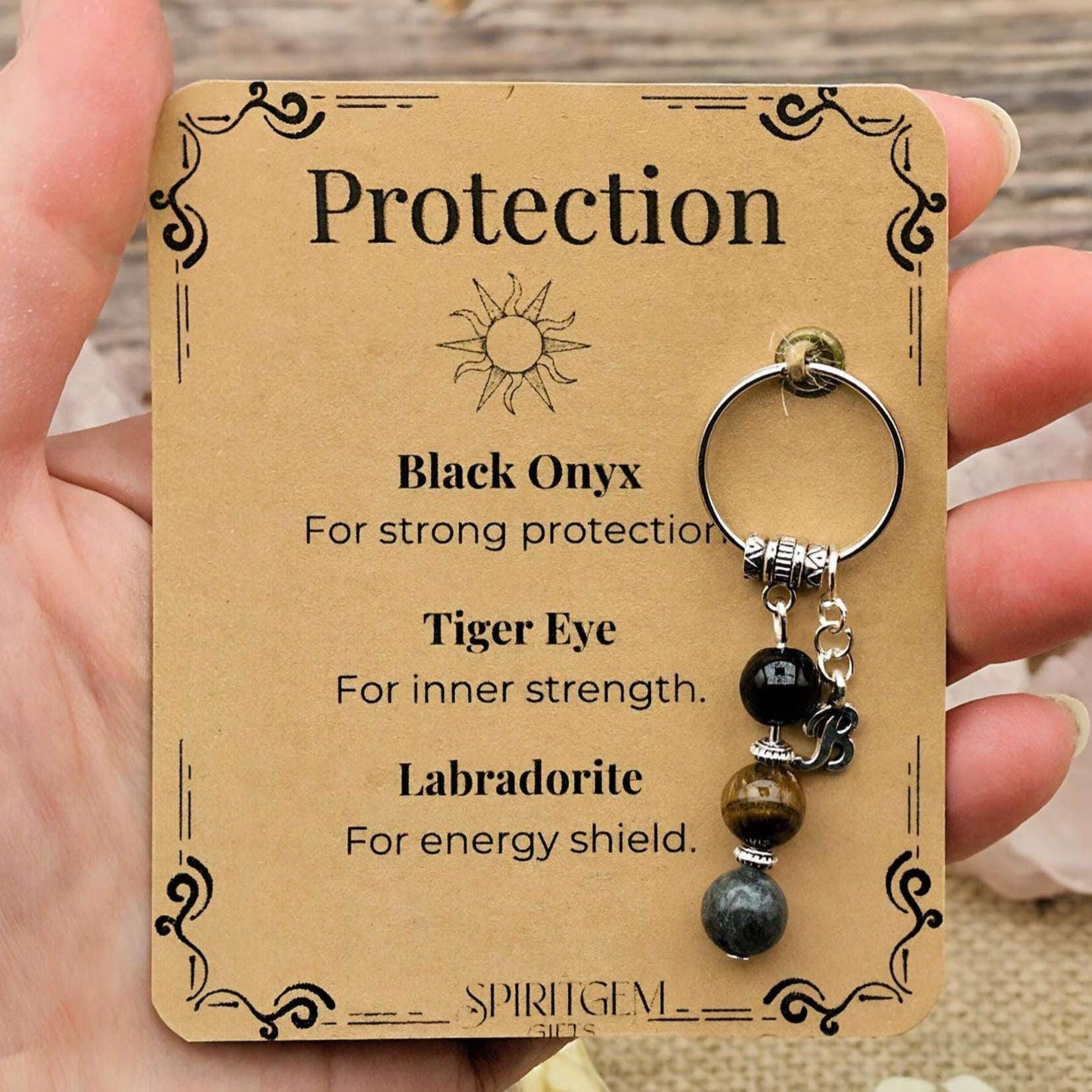 This premium keyring is created as a gentle reminder of protection, inner strength and energetic grounding. You can keep it for yourself or gift it to someone who needs support, stability and a sense of safety in everyday life. You can also choose to add an initial if you'd like it to feel more personal. It arrives in a sheer organza bag with a kraft toned ribbon, ready to give straight away.