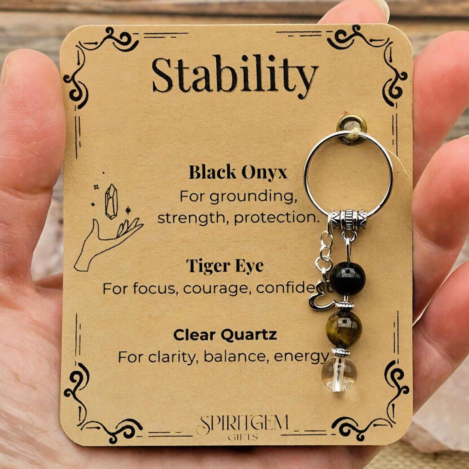 This premium keyring is created as a steady reminder of stability, grounding and inner strength. It represents balance, focus and a sense of protection during everyday challenges. You can keep it for yourself or gift it to someone who needs confidence, calm support and emotional stability. You can also choose to add an initial if you'd like it to feel more personal. It arrives in a sheer organza bag with a kraft toned ribbon, ready to give straight away.